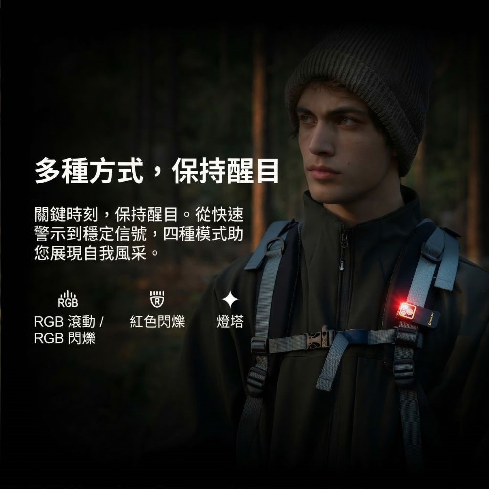 紅光信標 (Beacon)、SOS求救模式、中心電量指示燈
