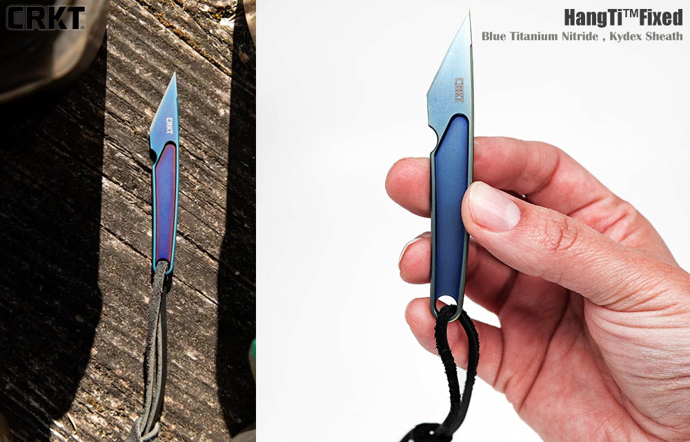 CRKT HangTi™ 一體小型頸刀 - 鈦金屬 (藍色氮化鈦處理)