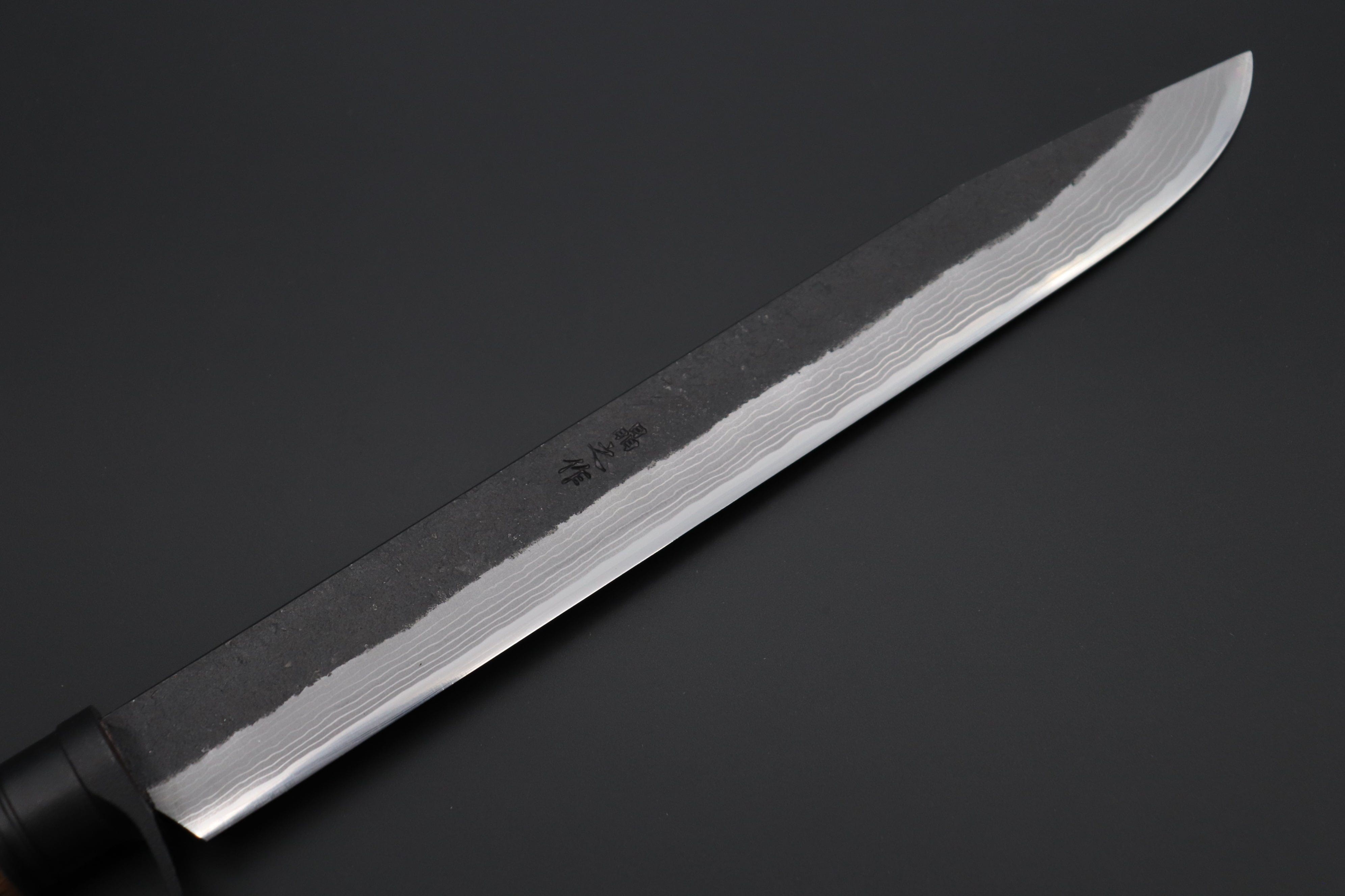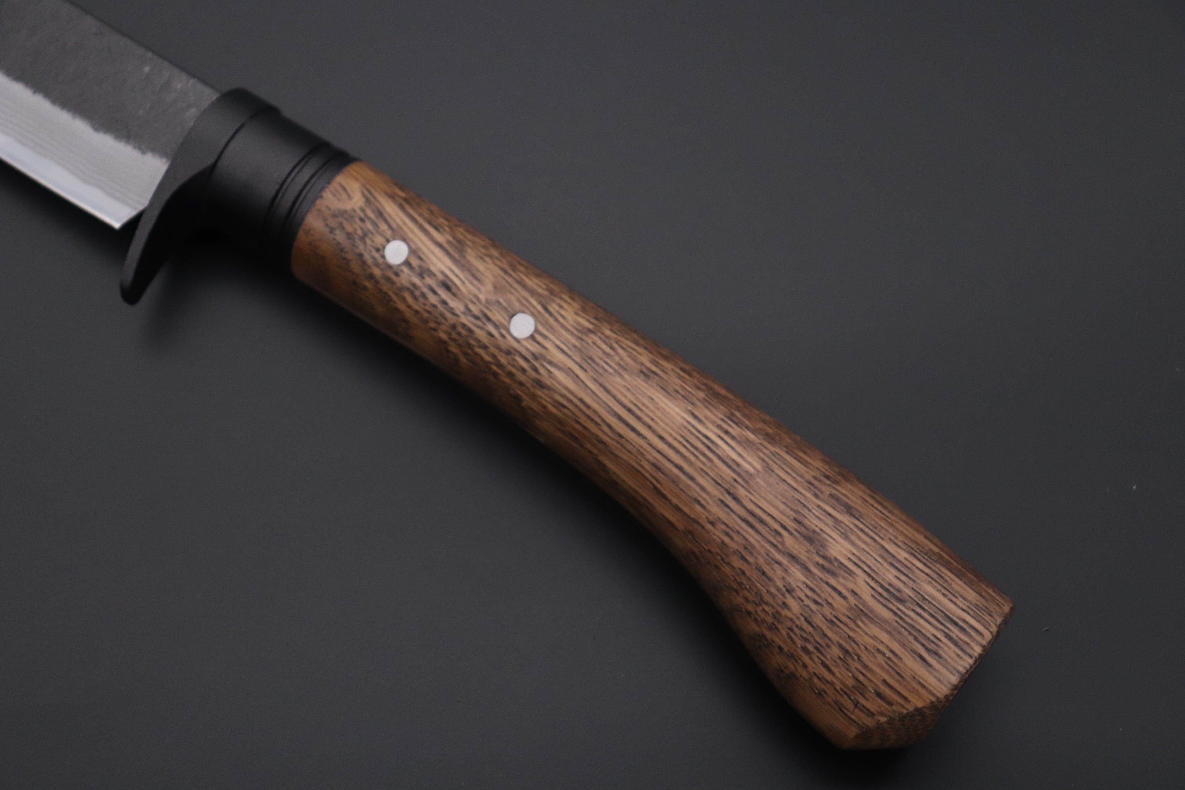 作用: 這種深色層可以保護刀片免受進一步氧化(鏽蝕),並賦予刀具一種粗獷、傳統的日式外觀。