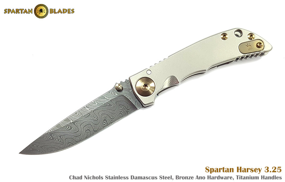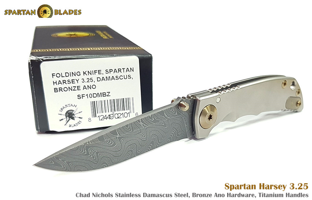 Spartan Blades Harsey Damascus Bronze Ano Hardware Folding Knife