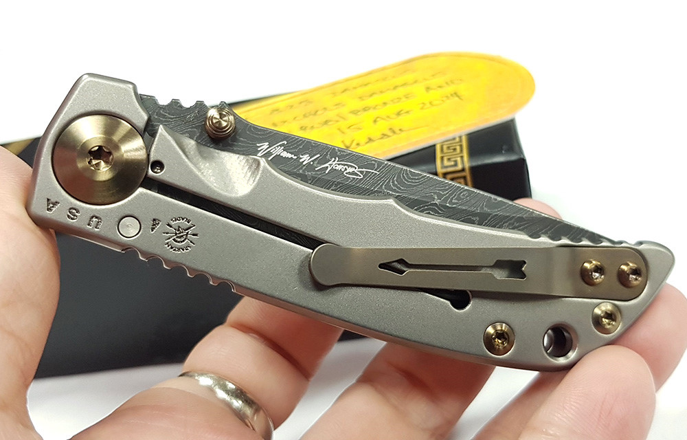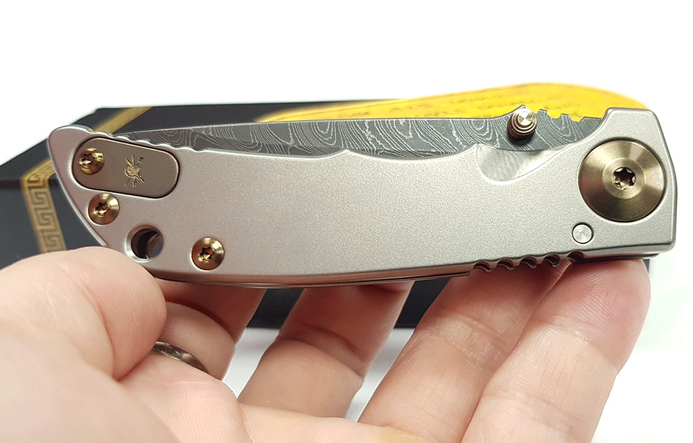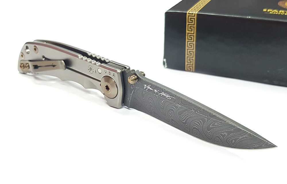 斯巴達 Spartan Harsey 鈦柄銅色中軸螺絲Frame Lock折刀 -大馬士革鋼(酸蝕處理)【不二價】