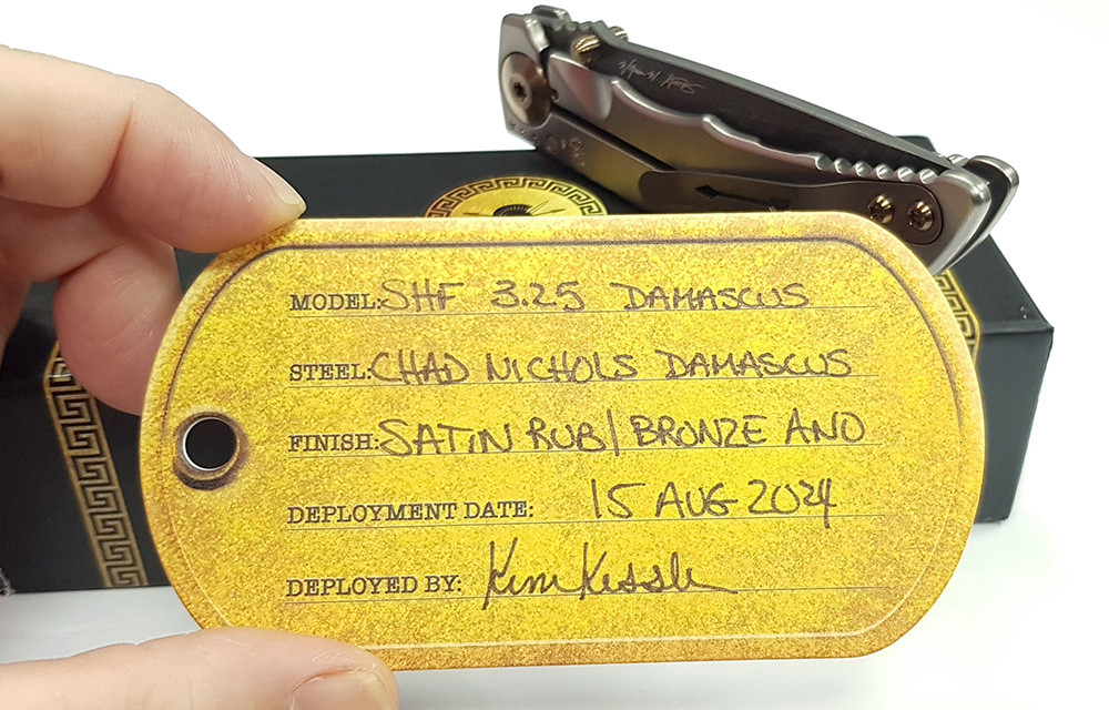 ■優雅優質刀片:配有 3.25 吋 Chad Nichols 大馬士革刀片。攜帶方便,手感舒適;是真正屬於非凡的紳士(或女士)的折刀。