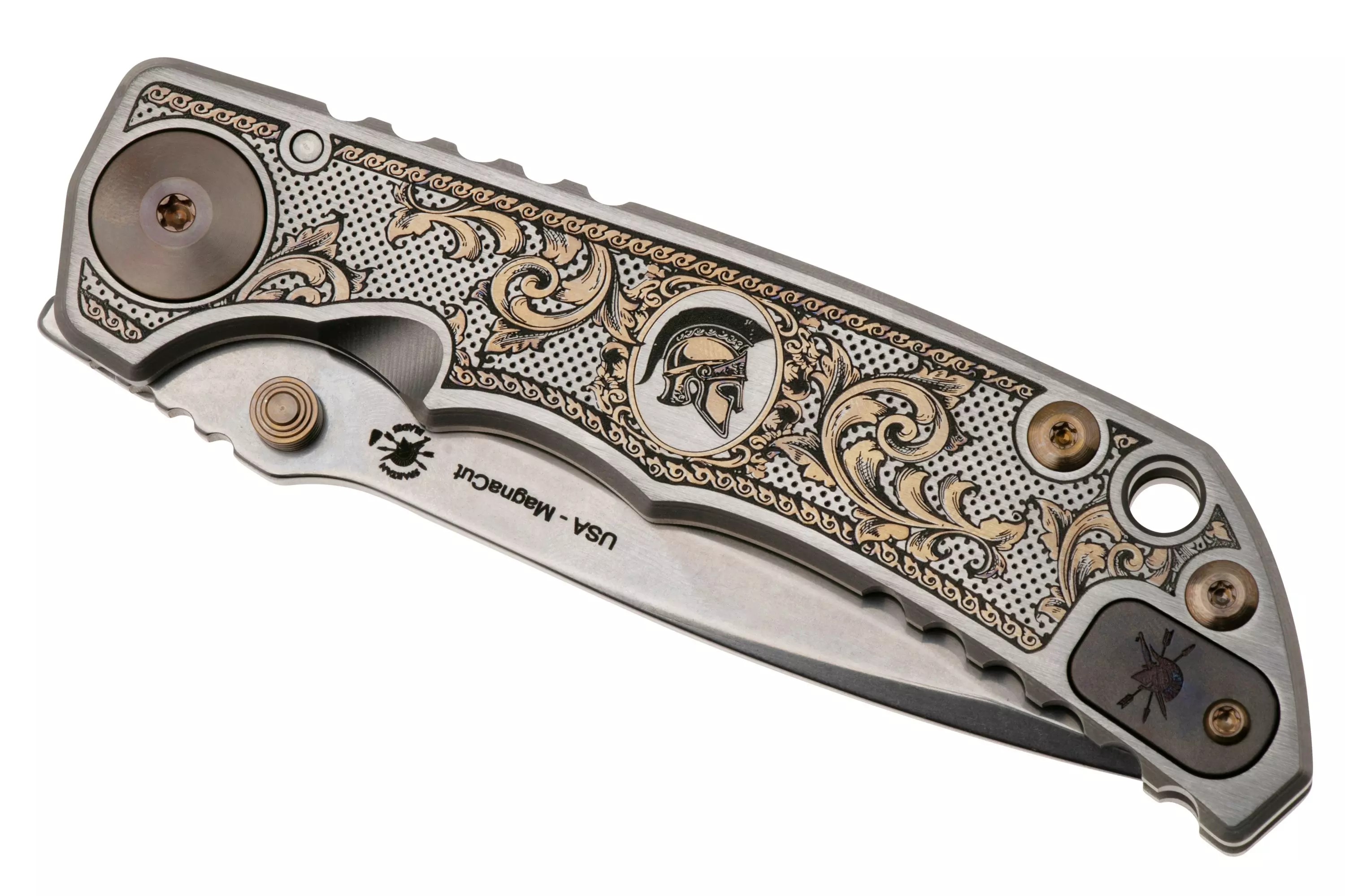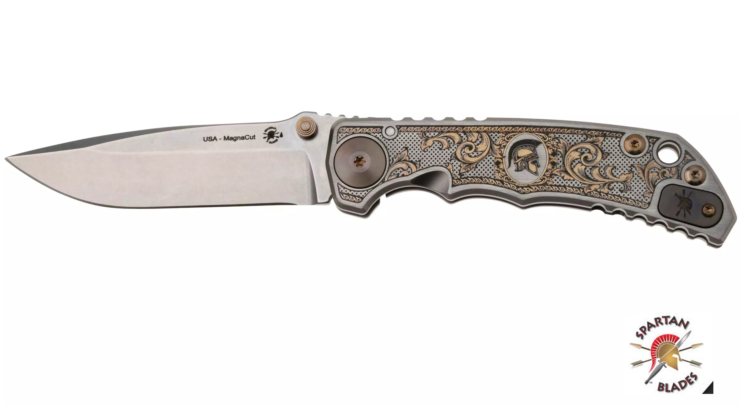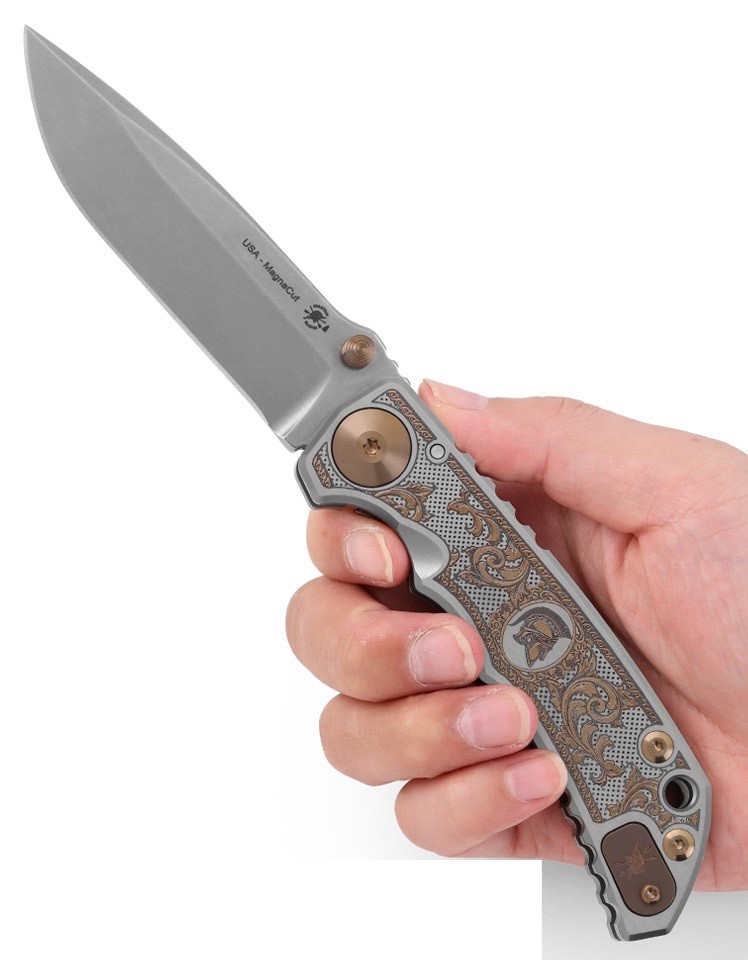 此款Spartan Blades Harsey Folder是與世界著名刀具設計師 William (Bill) Harsey 的合作成果,它可用作日常攜帶、戰術或野外使用。配備 3.95 英寸 CPM-MagnaCut 粉末不鏽鋼刀片。鈦製握柄,具符合人體工程學的手指凹槽。鈦制口袋夾可拆卸並裝於另一面。雙拇指螺柱方便左、右手皆能快速開啟。這把刀曾在佐治亞州亞特蘭大刀展上贏得了2016年度美國製造刀具獎。