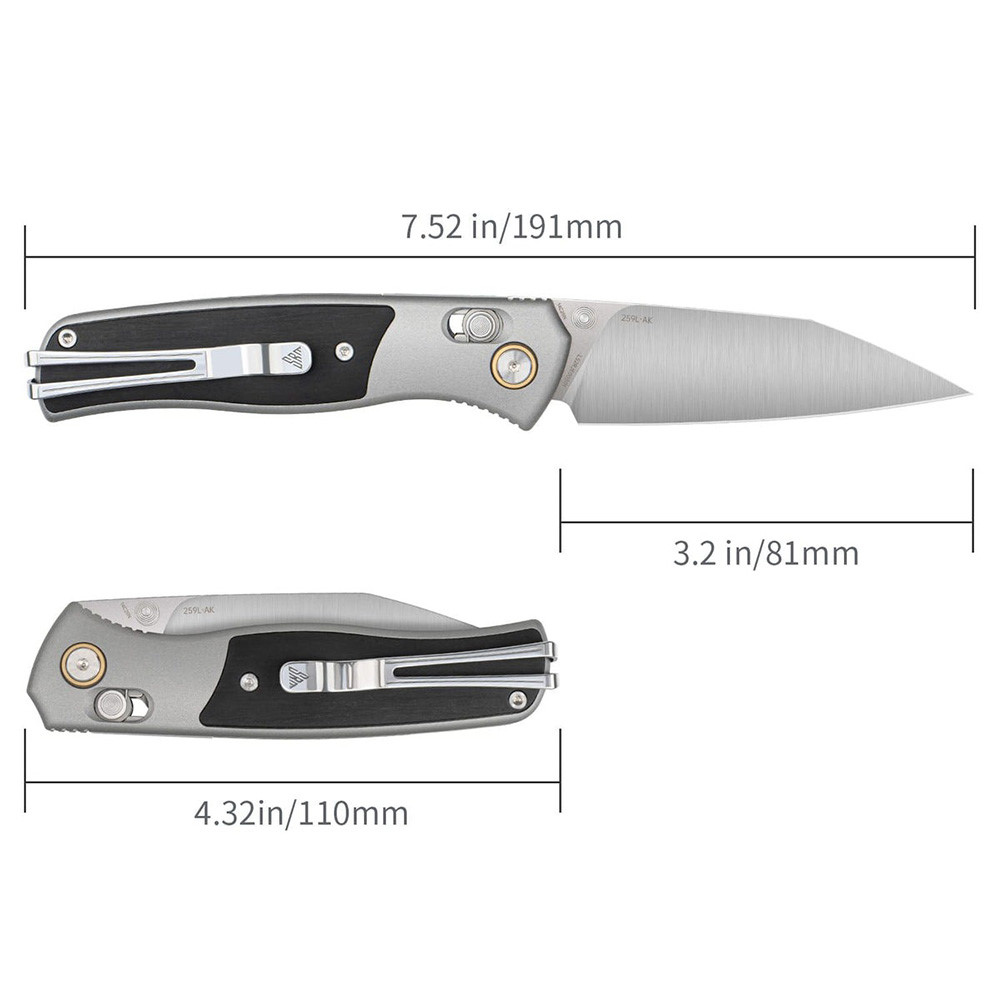 SRM Medal 259L-AK 灰鋁鑲崁烏木柄 Ambi Lock折刀 -14C28N鋼(Satin 處理)