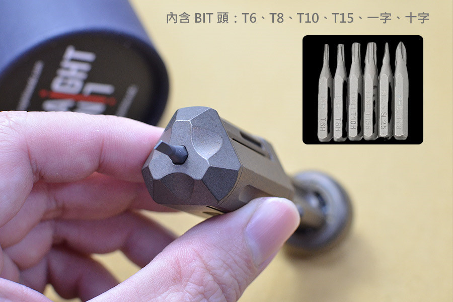 ●內部包含BIT:( T6 - T8 - T10 - T15 - Flat一字平頭 - Phillips十字頭)各1