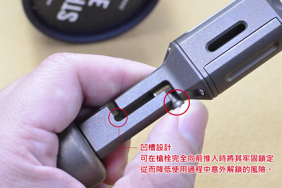 新增的凹槽設計可在槍栓完全向前推入時將其牢固鎖定,從而降低使用過程中意外解鎖的風險。
