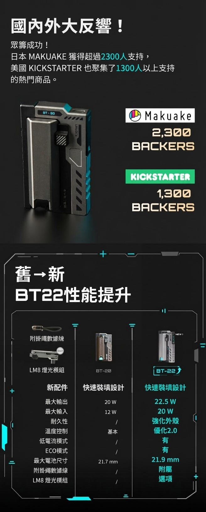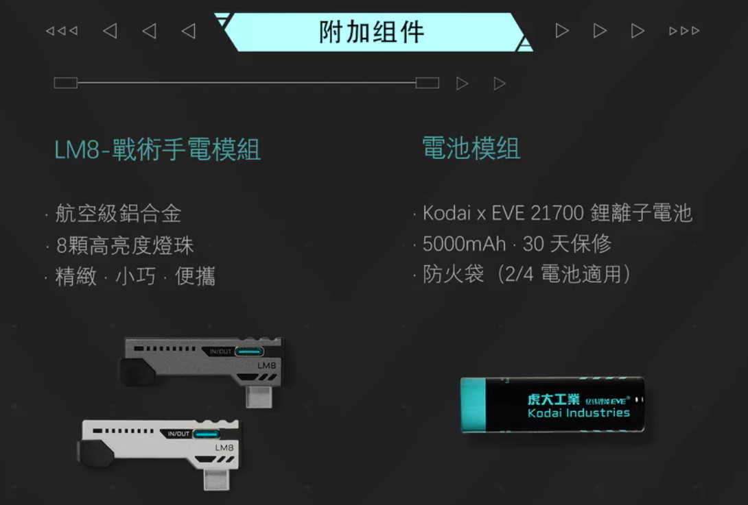 【如果您已經擁有 BT-22,LM8s 是最完美的配件。它讓您的行動電源不再只是充電器,而是一個專業級的照明工具。對於喜愛機甲風、工業設計或戶外活動的玩家來說,這套組合的「模組化」可玩性非常高。】