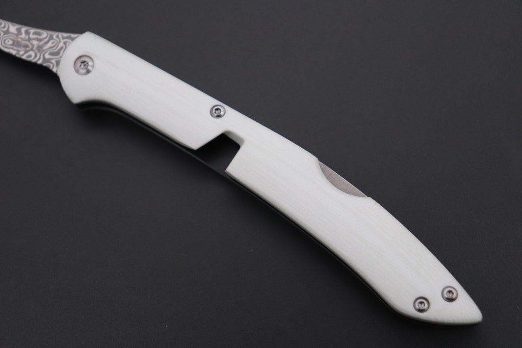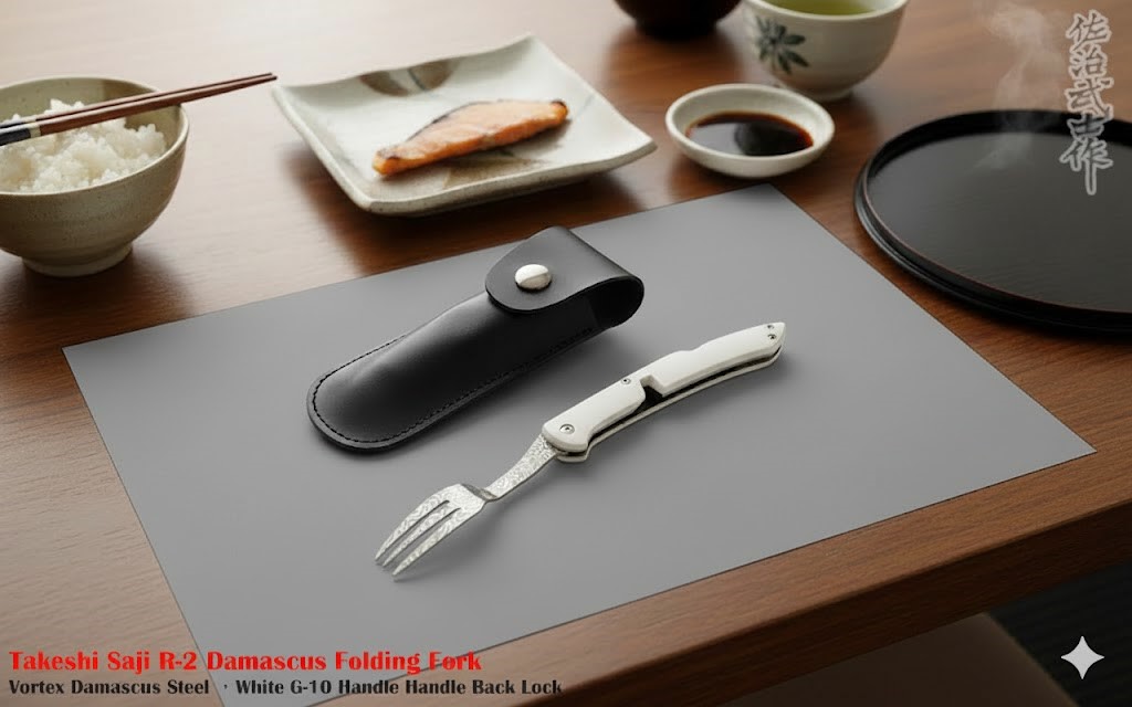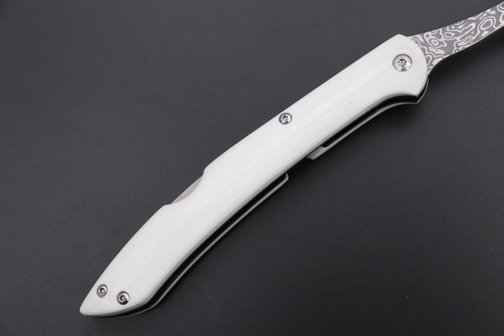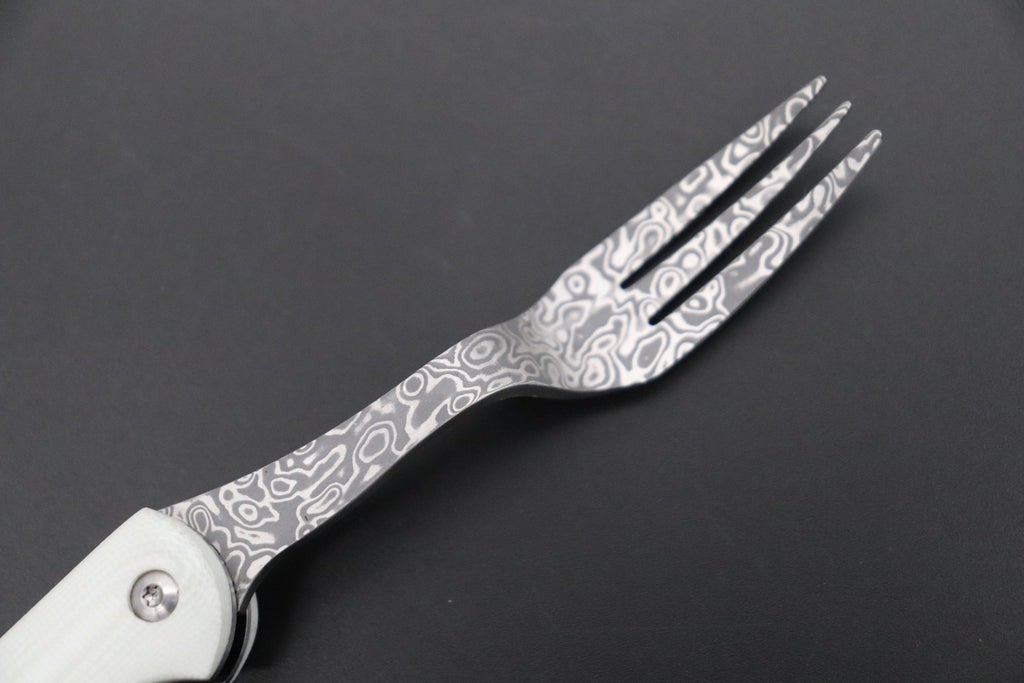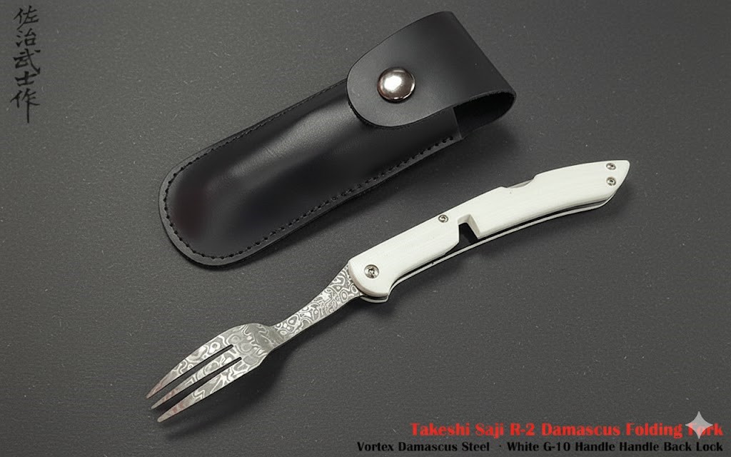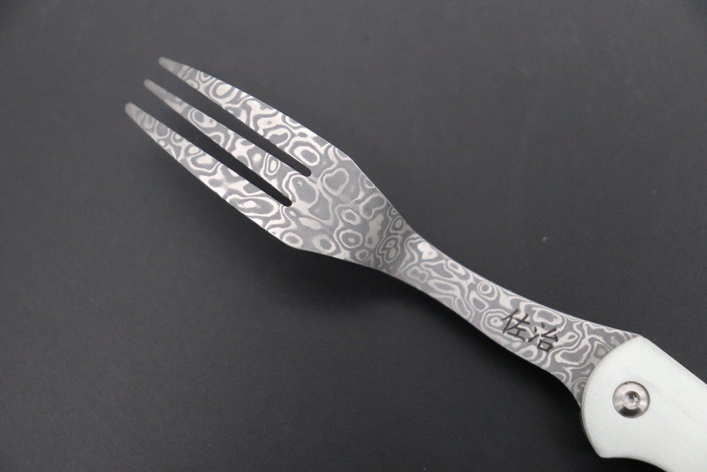 佐治武士 Takeshi Saji R-2 Damascus 大馬士革摺疊叉 - 白G10柄