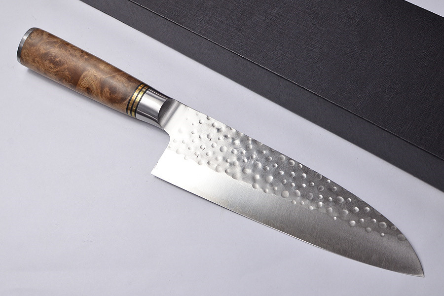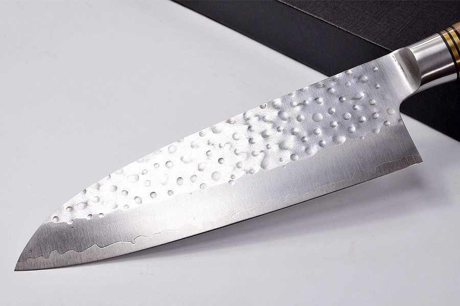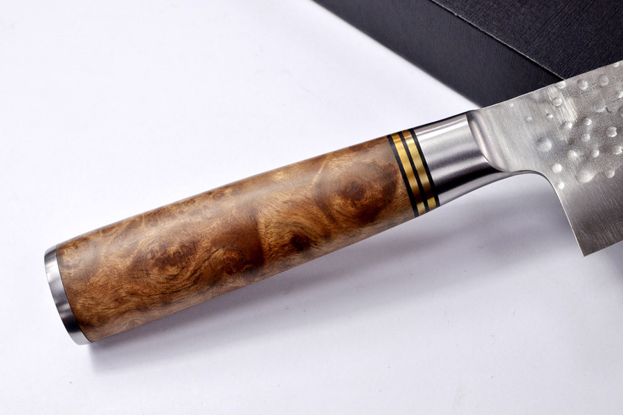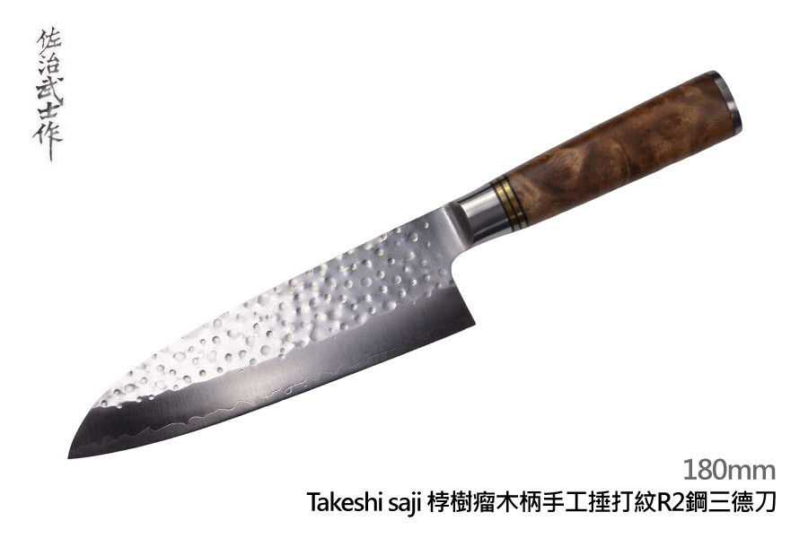 佐治武士 Takeshi Saji 榅桲樹瘤木柄手工捶打紋R2鋼三德刀 -180mm