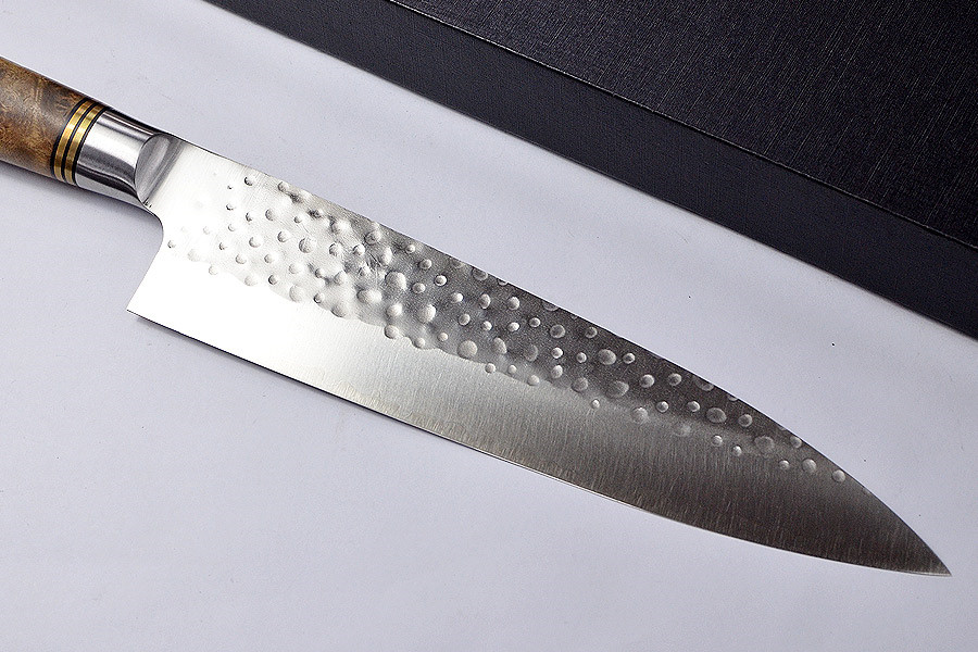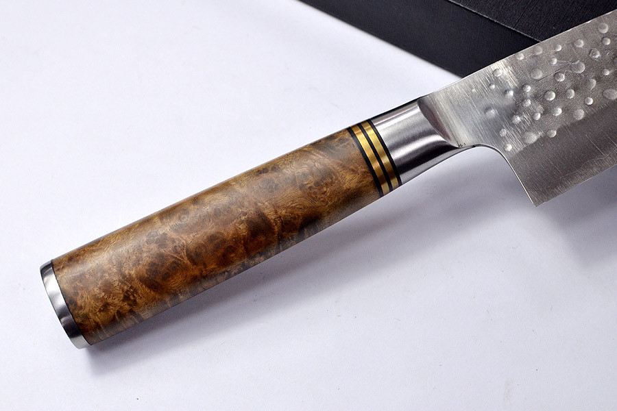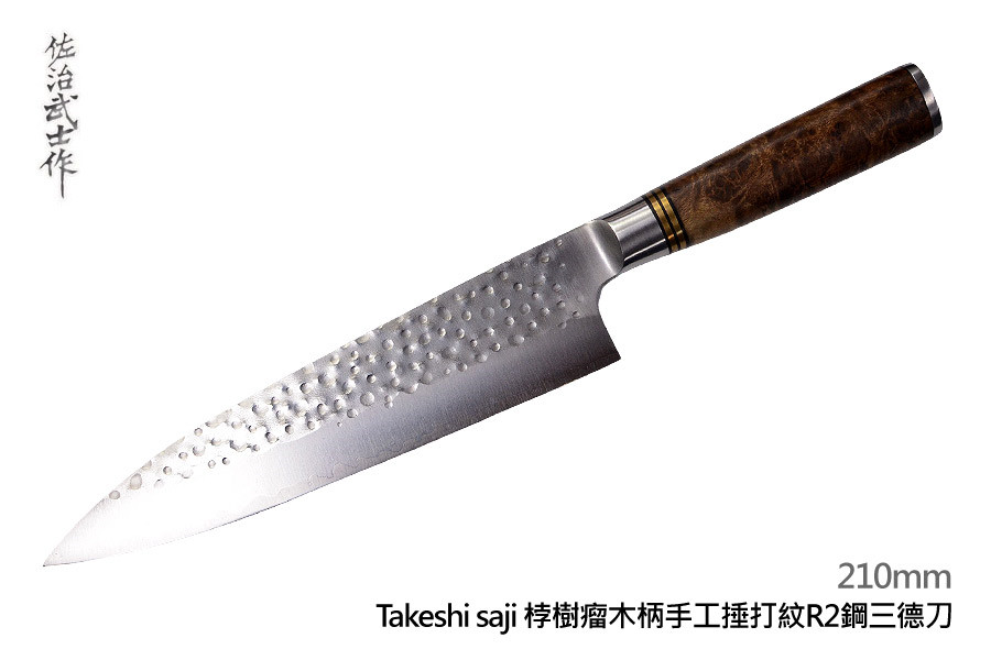 佐治武士 Takeshi Saji 榅桲樹瘤木柄手工捶打紋R2鋼三德刀 -210mm