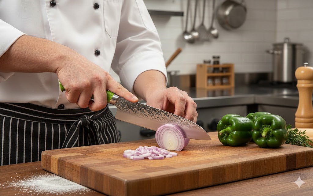 三德刀刀身修長,刀尖圓潤,用途廣泛,非常適合切割肉類、魚類或蔬菜;因此得名“三德刀”,字面意思就是“三種用途”。三德刀常被推薦為多用途廚房刀。