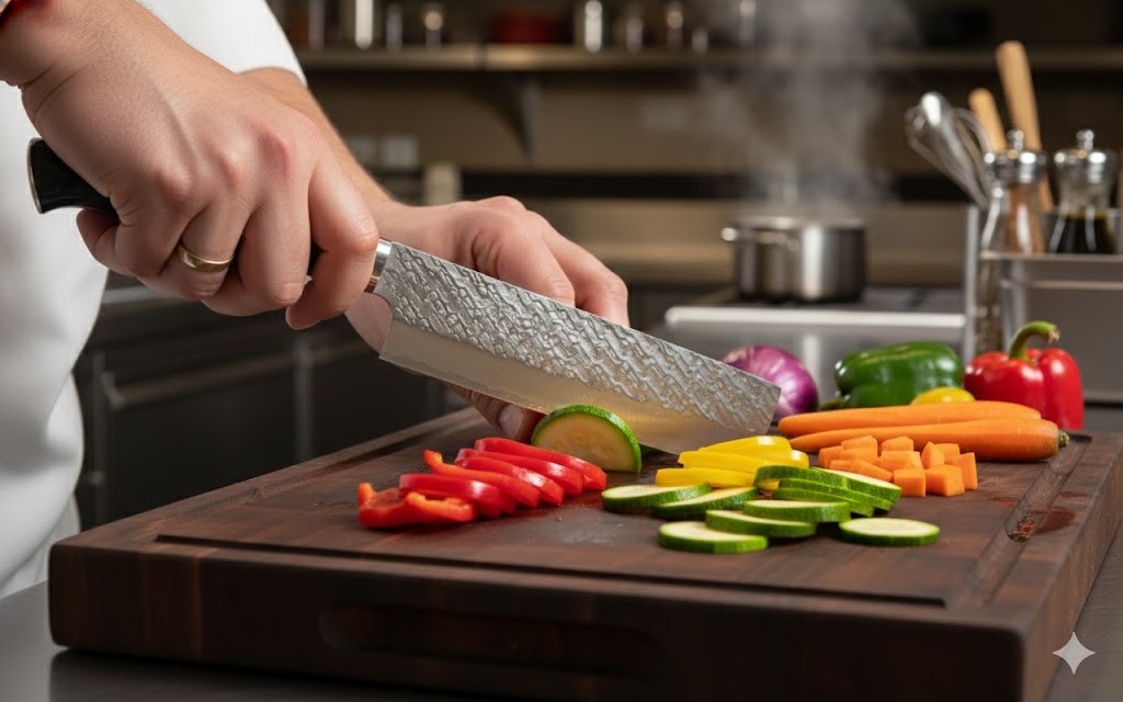 菜切是一種雙刃刀,刀身呈長方形,刀刃細長。它在日本各地都很流行,常被家庭廚師用來快速高效地切碎、切片或剁碎蔬菜和水果。它也越來越受到素食者的青睞。