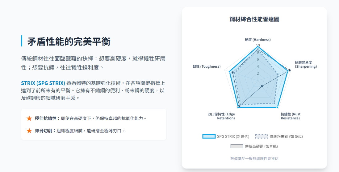 ●武生特殊鋼株式會社發布了一種名為「STRIX」(「STrong matrix」的縮寫)的神秘新型特種粉末鋼。這種新型鋼材宣稱的特性引起了廣泛關注,吸引了許多刀具行業專家和資深刀具愛好者的目光。