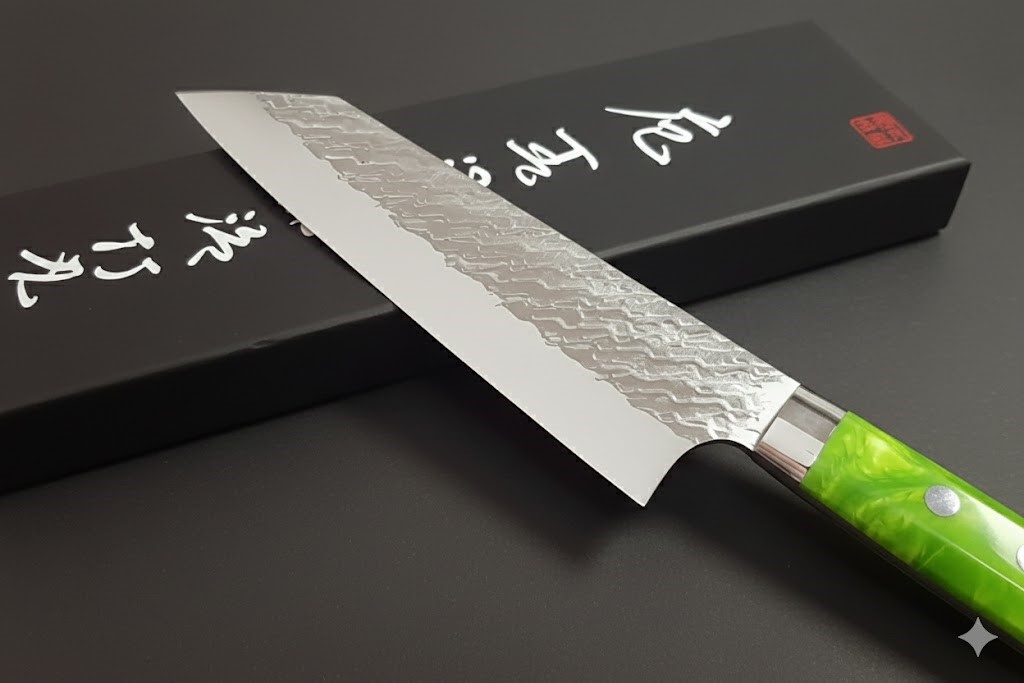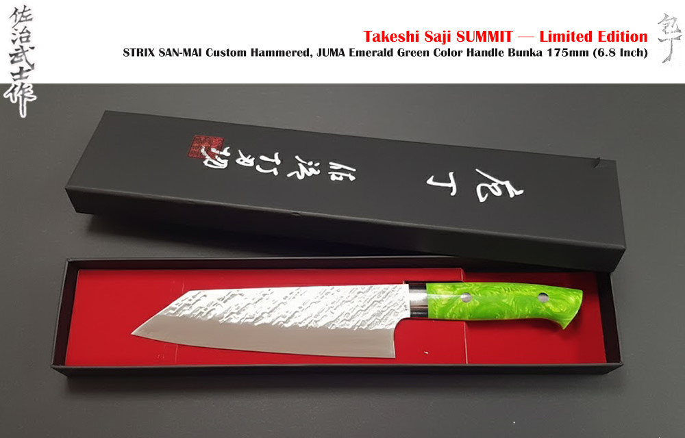 佐治武士 Takeshi Saji SUMMIT - 限量版訂製系列-祖母綠色JUMA®聚脂柄 Bunka 錘紋文化刀 - SPG STRIX 粉末夾鋼錘紋-175mm