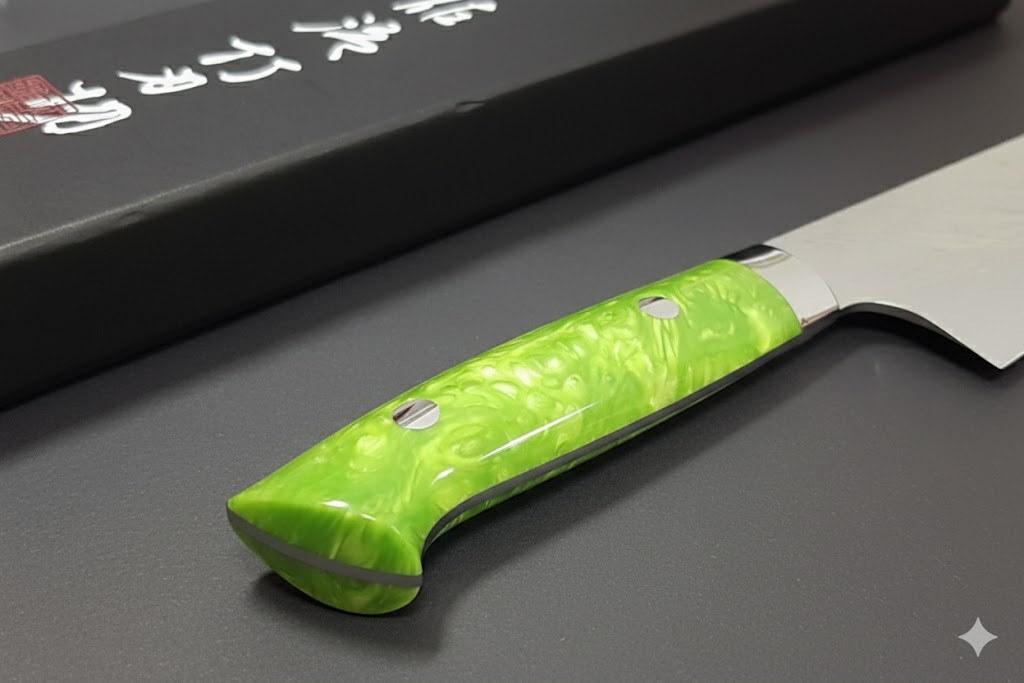 JUMA Emerald Green Color Handle with Stainless Steel Bolster Made in Japan