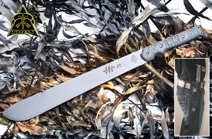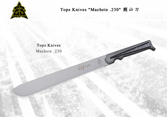 Tops Condor Machete .230 開山刀,採用 1095 高碳鋼為鋼材,刀身一體成形製作,結實無比,搭配電木握柄,握感舒適。同時配有戰術尼龍刀套,刀套上含有2個配件口袋,可以容納小工具,非常適合野外用途。
