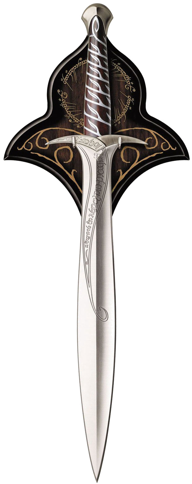 《魔戒》已售出超過一億冊,被翻譯成40多種語言,數百萬人伴隨著它成長。這部經典史詩被數百萬人視為史上最偉大的奇幻冒險故事。 J.R.R.托爾金的這部非凡史詩三部曲,講述了善惡雙方爭奪一枚魔戒的鬥爭。這套三部曲被譽為20世紀最受歡迎的書籍,並被新線影業改編成一系列長片。堅固的金屬護手和柄頭,仿古金屬飾面。塑膠手柄,420不銹鋼刀片上飾有精靈藤蔓圖案。附木質展示牌和真品證書。