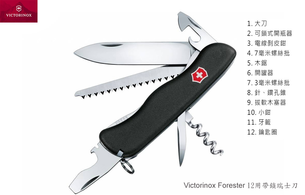 Victorinox Forester 12用帶鎖多功能瑞士刀(黑色)