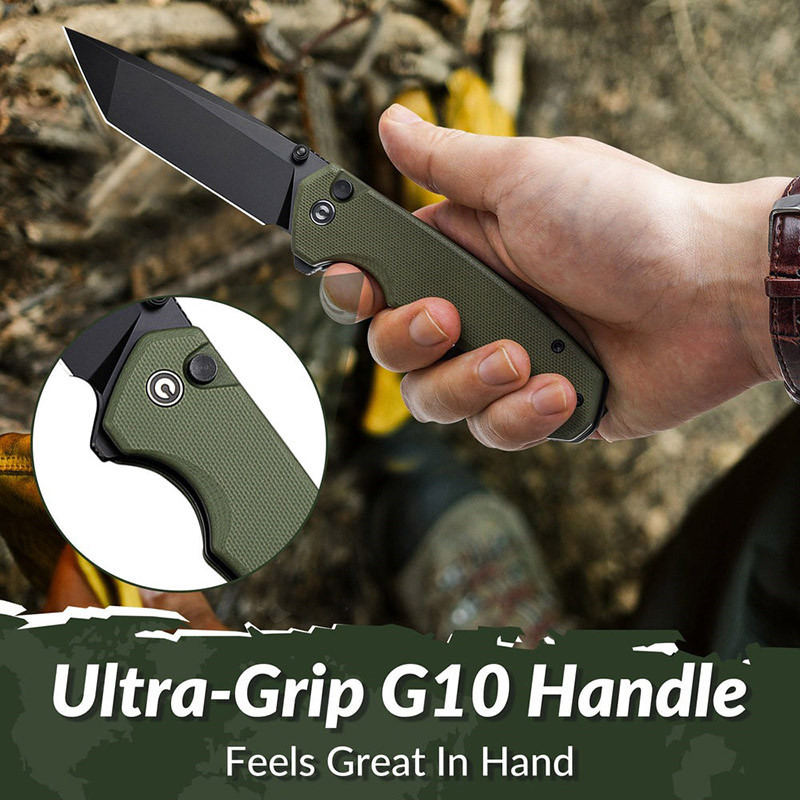 We Knife/Civivi Brazen 綠G10柄按鈕鎖折刀 - 14C28N鋼(黑色處理)