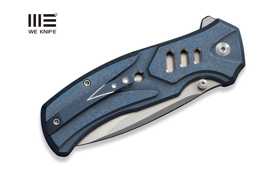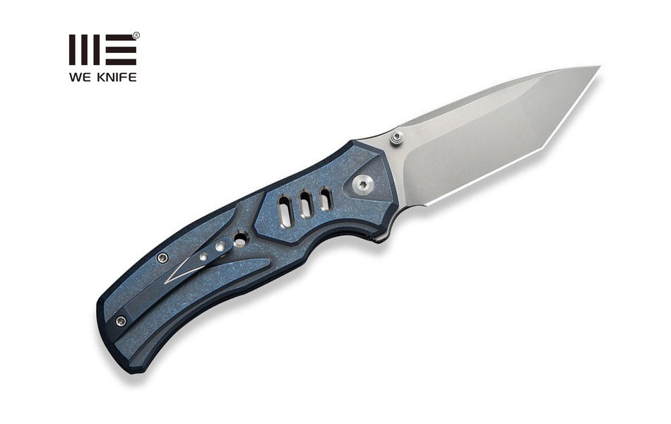 WEKNIFE Zentron Flipper & Thumb Stud & Button Lock Knife Blue Titanium Handle