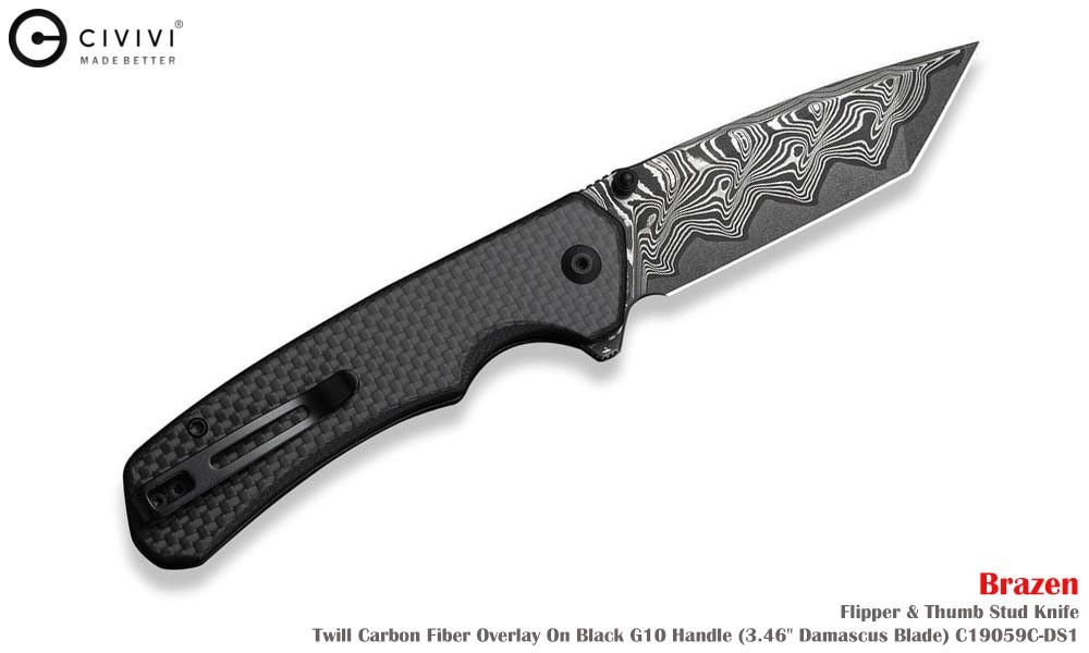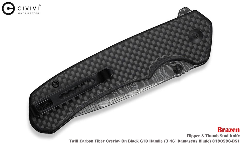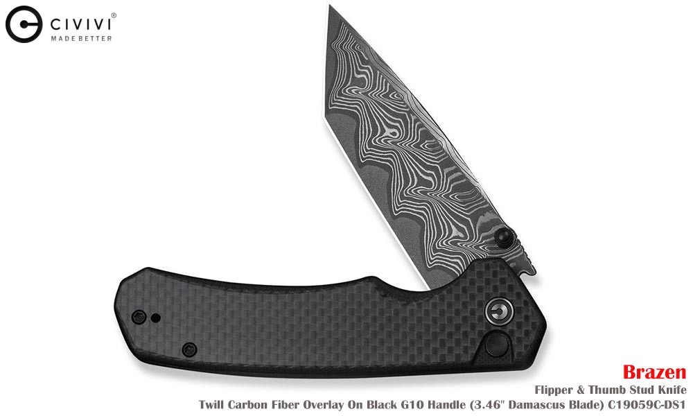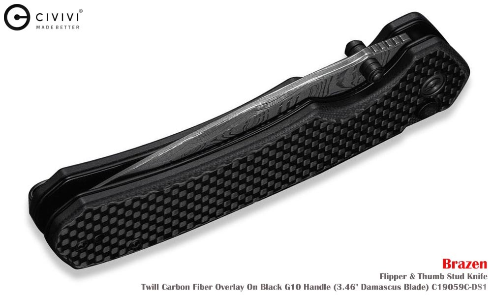 We Knife/Civivi Brazen 黑G10+碳纖柄 Button Lock折刀 - 大馬士革鋼
