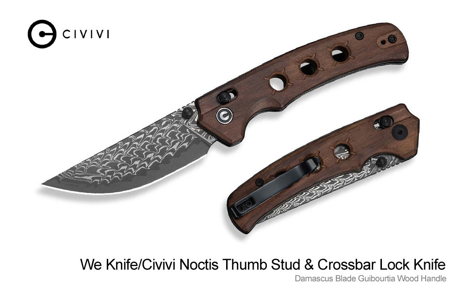 CIVIVI Noctis Thumb Stud & Crossbar Lock Knife Guibourtia Wood Handle (2.98" Damascus Blade)