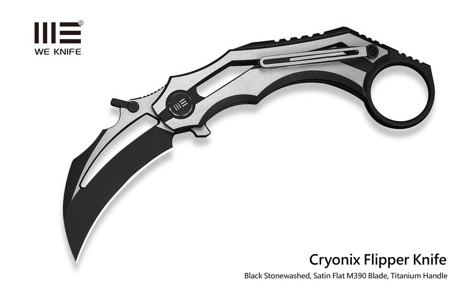 We Knife Cryonix黑/灰鈦柄Flipper虎爪折刀/M390鋼