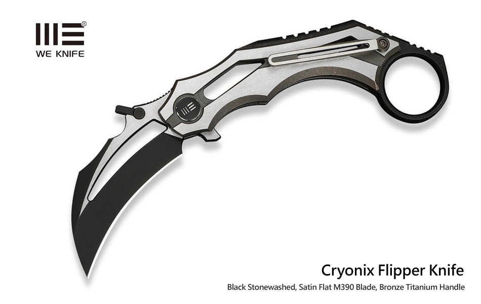 We Knife Cryonix棕/灰鈦柄Flipper虎爪折刀/M390鋼