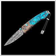 [限量版] William Henry LANCET TWISTED /Chad Nichols大馬士革鋼. 木目金框架鑲嵌綠松石-限量100隻-折刀