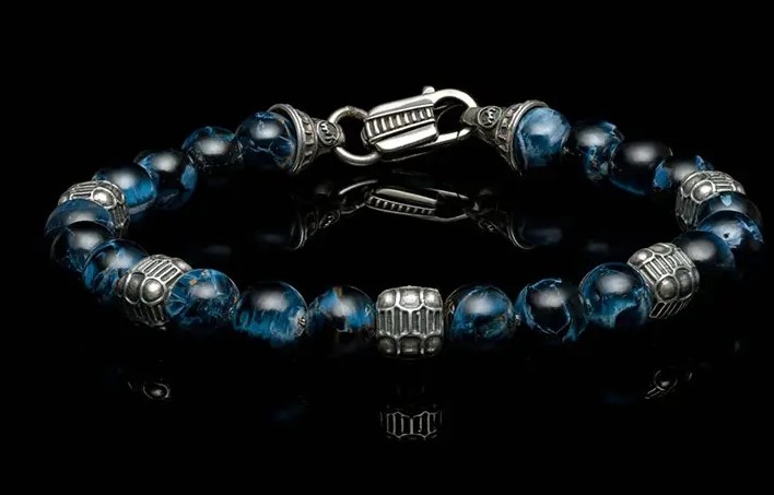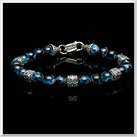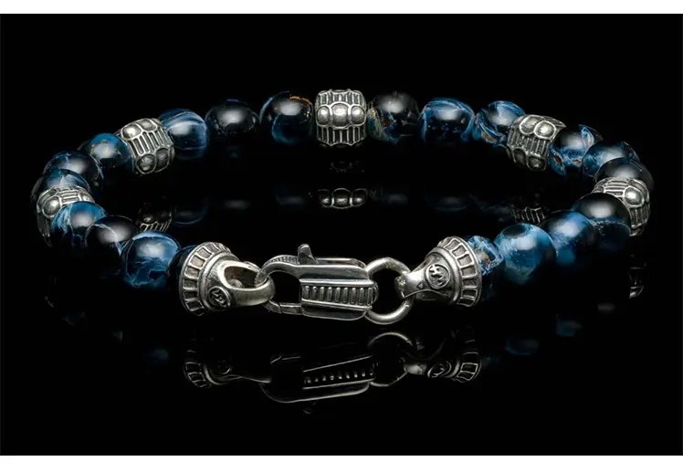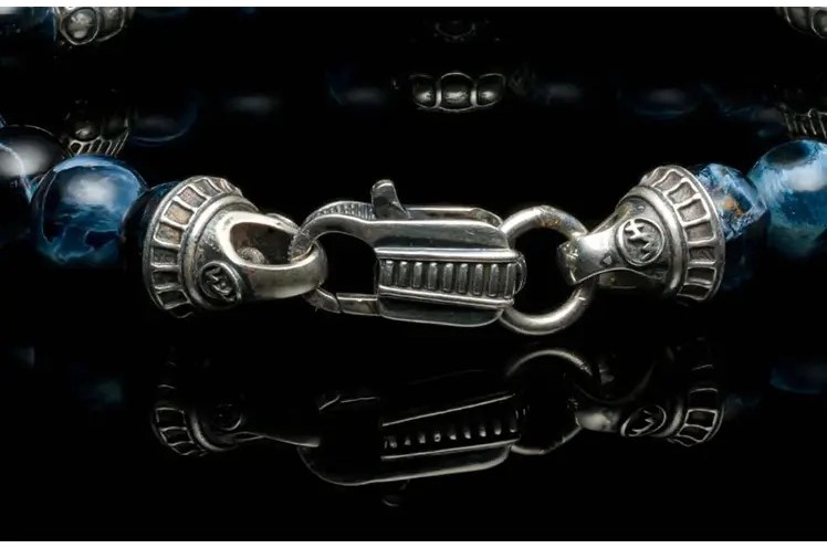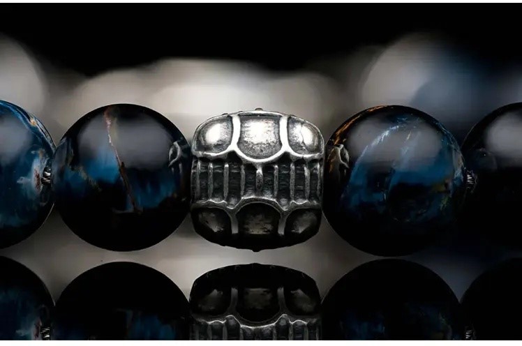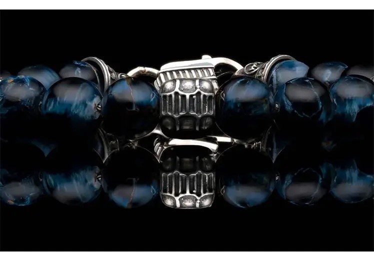 精鍊的力量,以更俐落的姿態呈現——採用 8mm 彼得石珠,搭配絎縫紋純銀立方體,並以客製化扣件收尾。流動與結構之間形成動態交織,為低調卻眼光獨到的收藏者而打造。