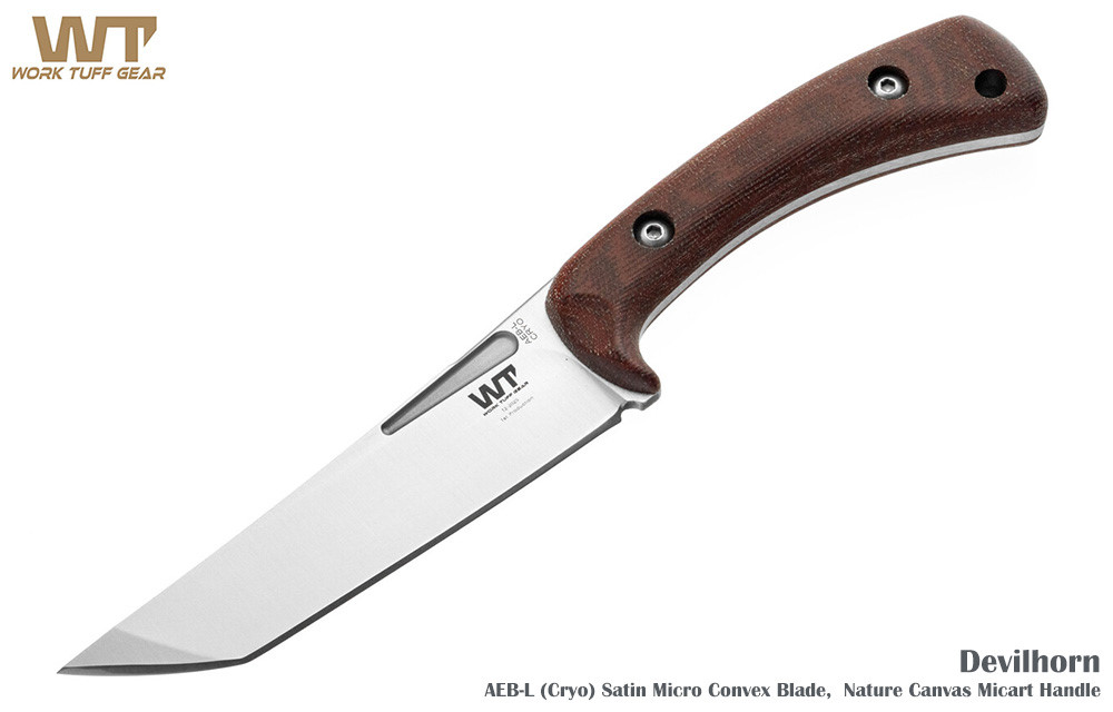 Devilhorn採用AEB-L 不銹鋼打造,並以全龍骨結構為基礎,配備日式短刀刀片,專為在壓力下保持強度、精確性和可靠性而設計。