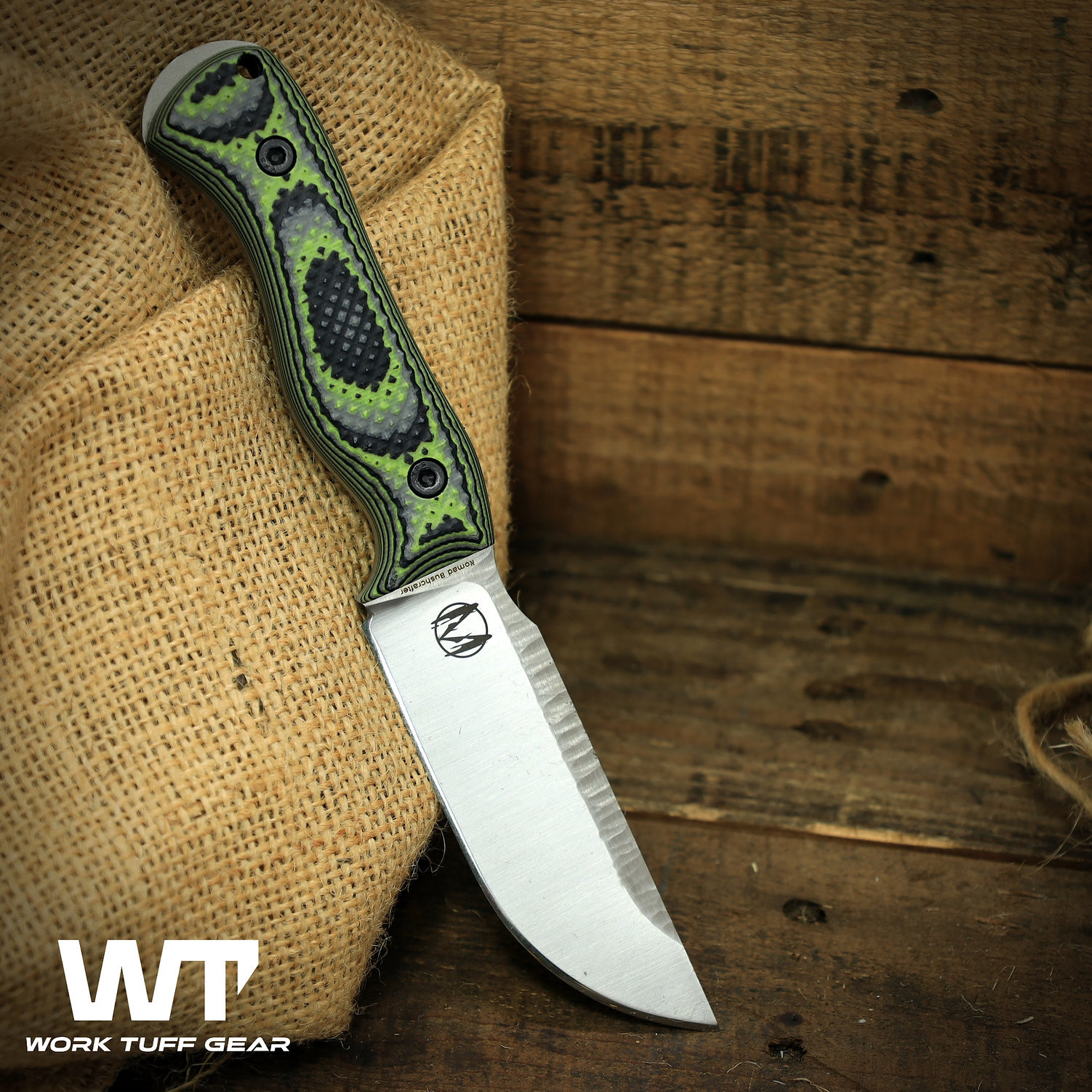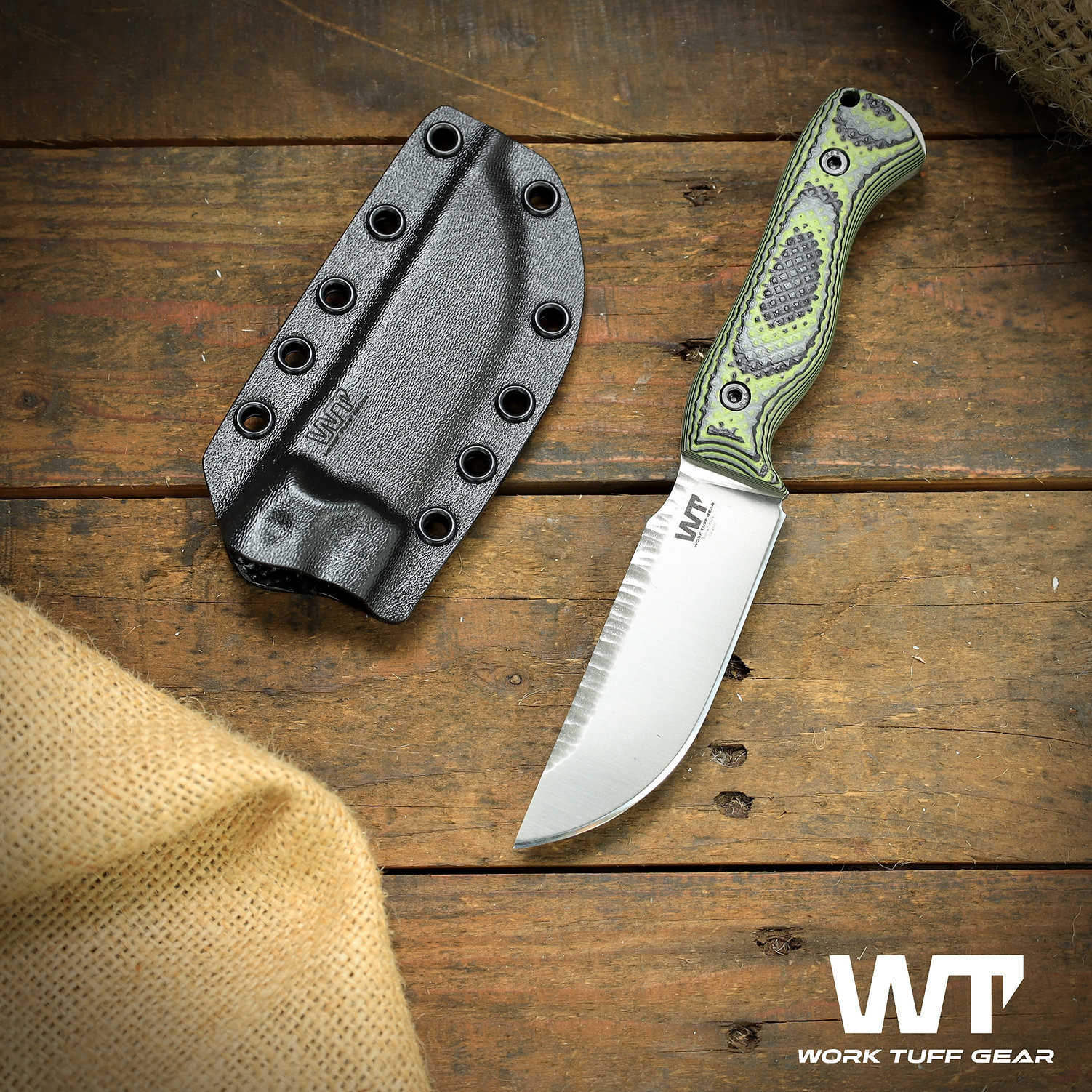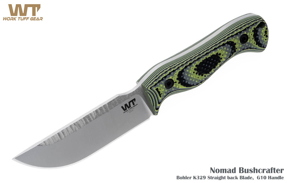 Work Tuff Gear - Nomad Bushcrafter 殭屍綠止滑G10柄直刀- Bohler K329鋼 (附黑K鞘 / Rugged 處理)