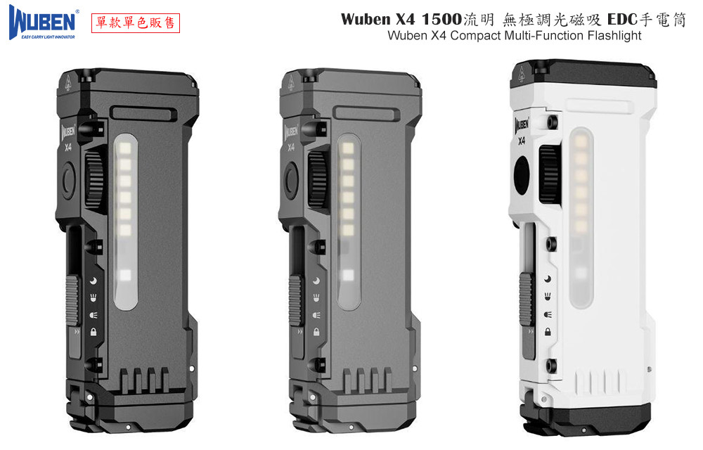 WUBEN X4 無極調光磁吸EDC手電筒 -1500流明 (灰)