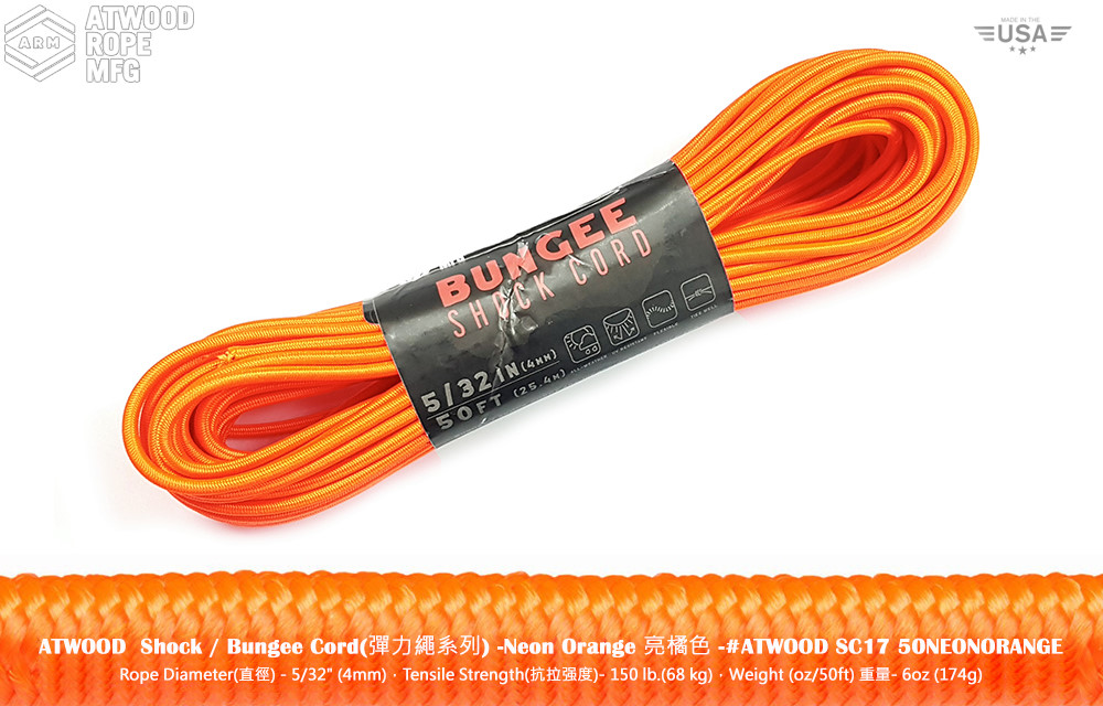 ATWOOD 5/32 Bungee Shock Cord 彈力傘繩 - 亮橘色 / 50呎