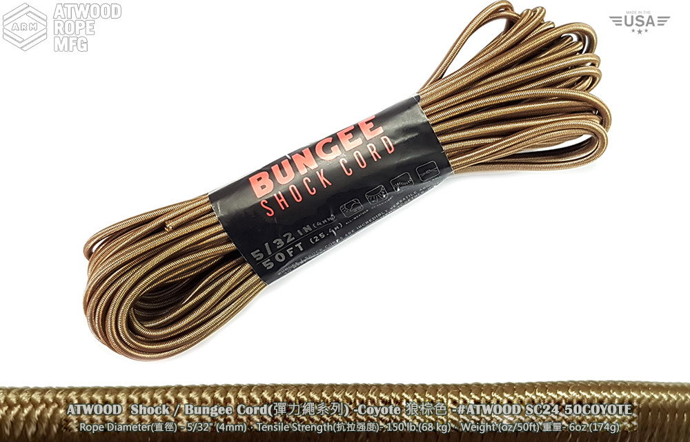 ATWOOD 5/32 Bungee Shock Cord 彈力傘繩 - 狼棕色 / 50呎
