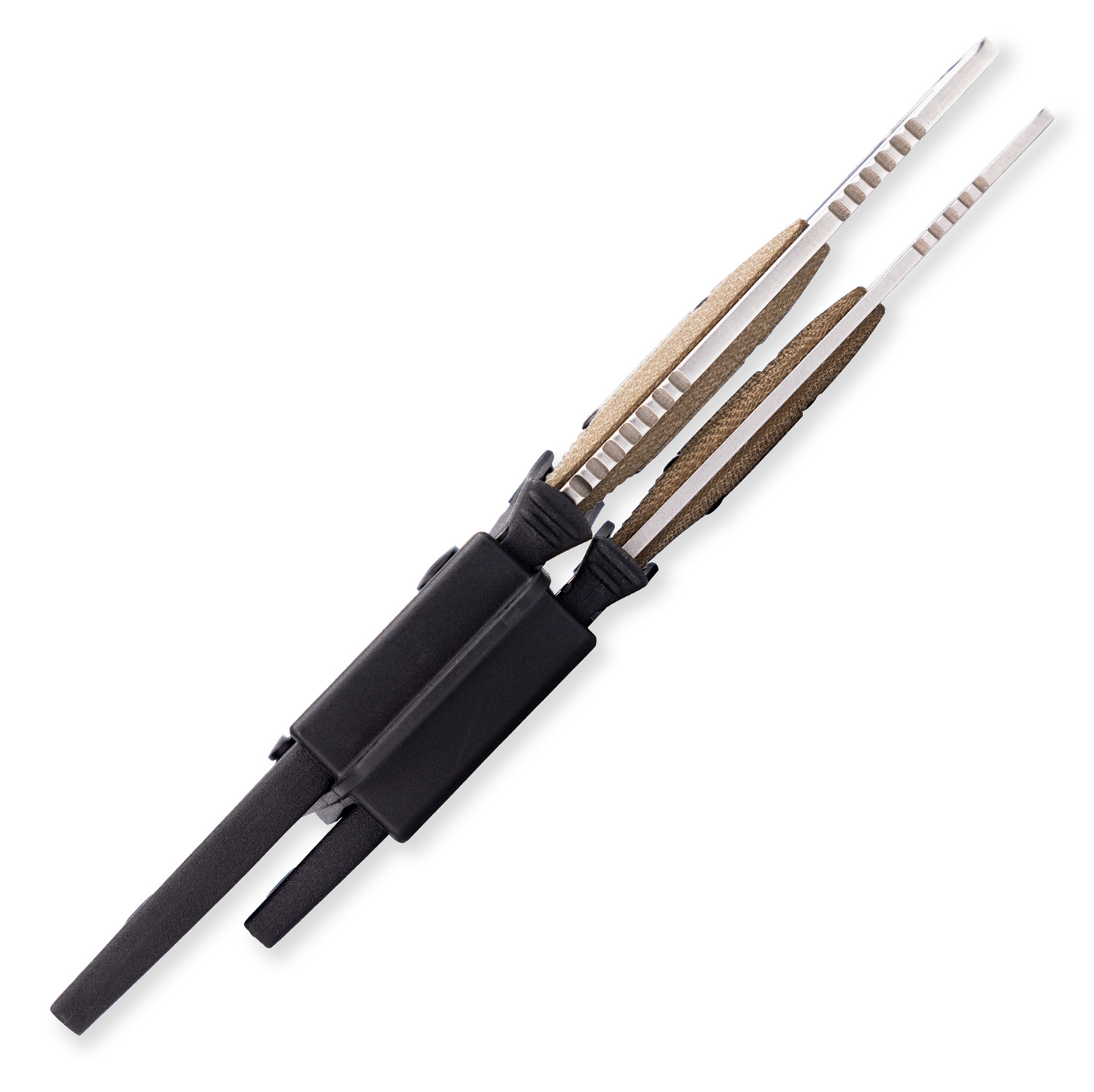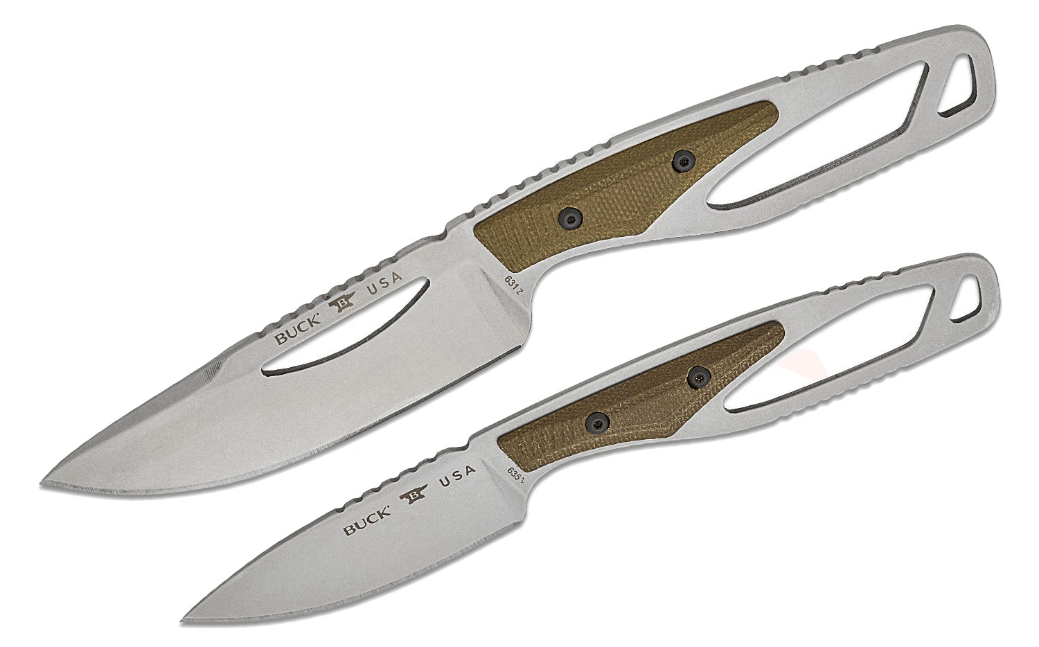 BUCK PakLite Field Kit Pro 631GRSVP套裝包含631 Field Pro和635 Cape Pro兩把獵刀,可輕鬆應對大多數戶外任務,並配備便捷的攜帶方式。刀刃採用優質BOS處理不銹鋼製成,確保卓越的鋒利度和耐用性。簡約的刀柄提供額外的抓握力和更佳的人體工學設計,也可根據需要拆卸,以便進行個人化握持或清潔。套裝包含一個輕便的聚丙烯刀鞘,可支援多種攜帶方式。 PakLite系列是追求輕巧、簡約且可靠性極高的刀具使用者的理想之選。