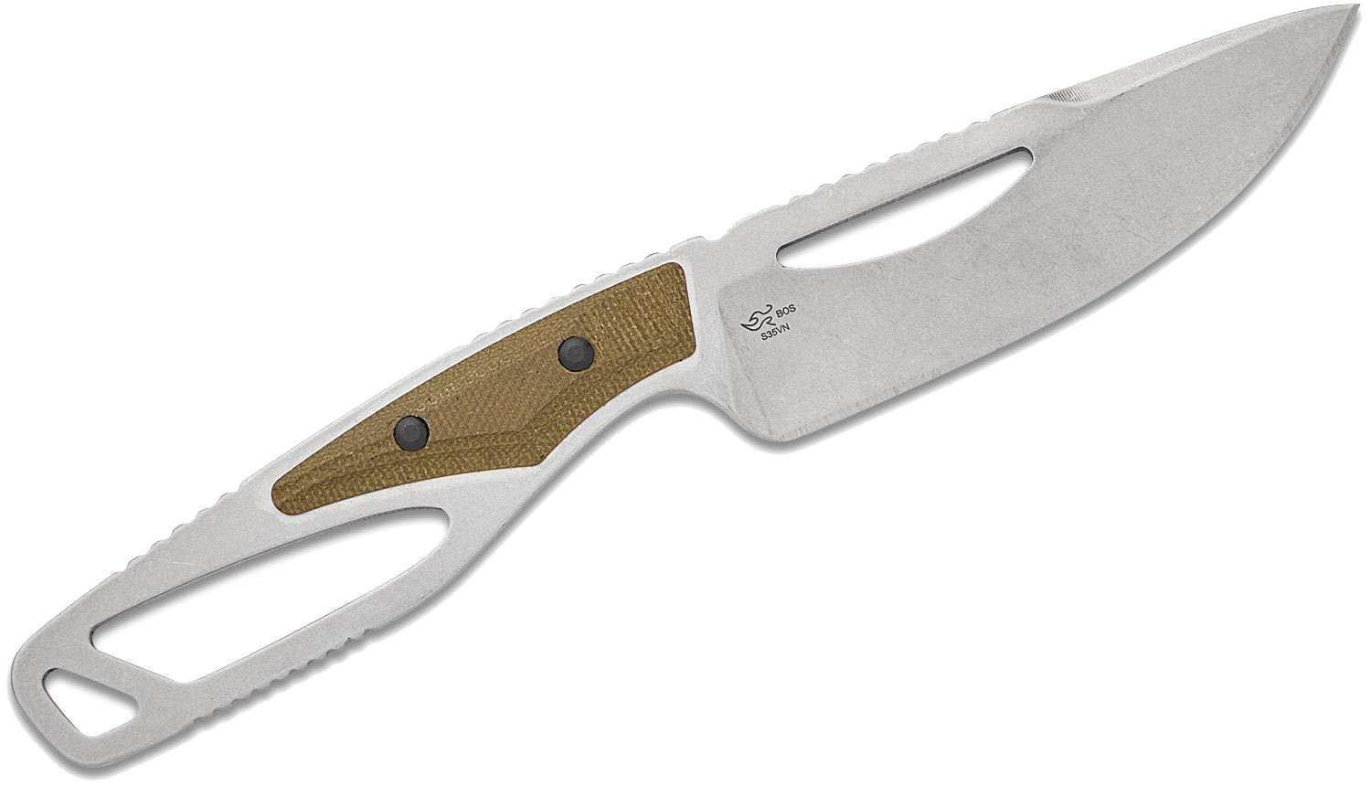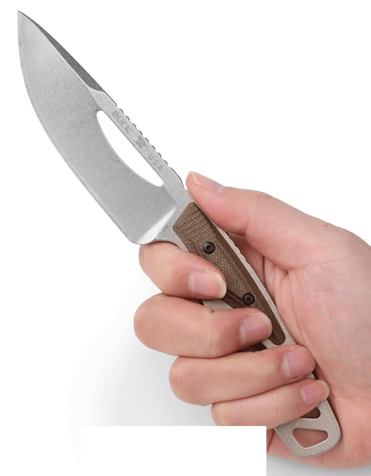 巴克PakLite Field Kit Pro 631GRSVP、631 Field Pro和635 Cape Pro獵刀的刀柄採用米卡塔(Micarta)材質。這是一種由織物和合成樹脂製成的複合材料。仔細觀察,你會發現其表面有細微的紋理,有時看起來幾乎像木頭。這種材質堅固穩定,握感極佳。