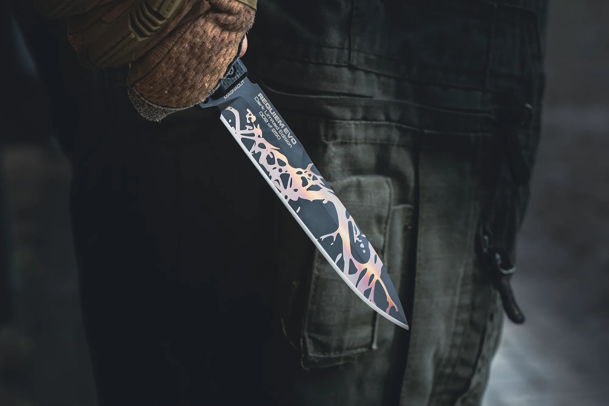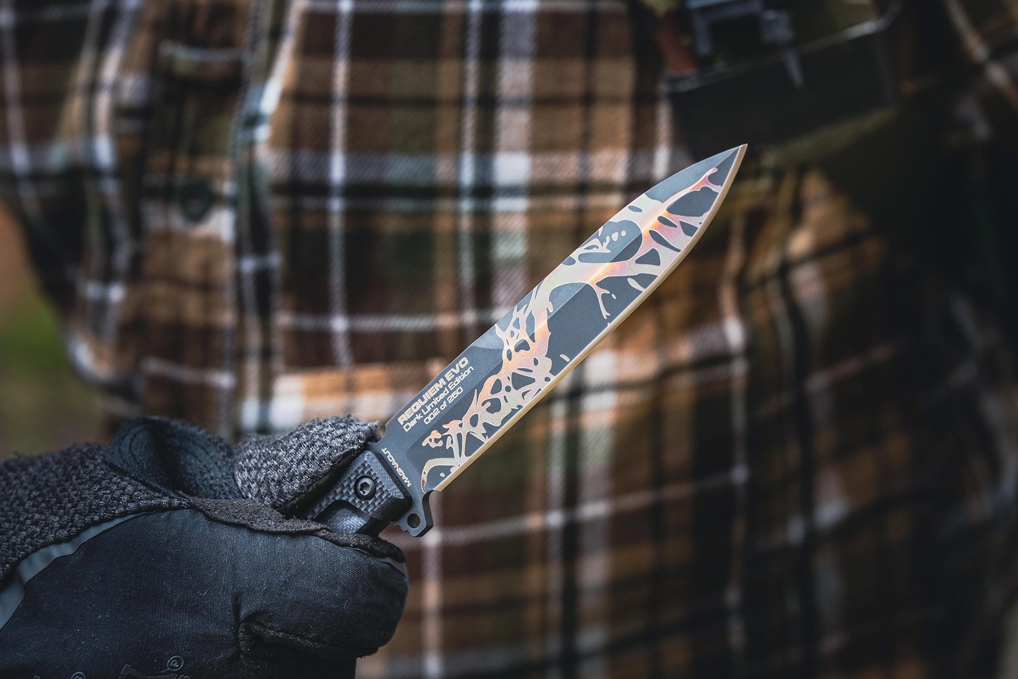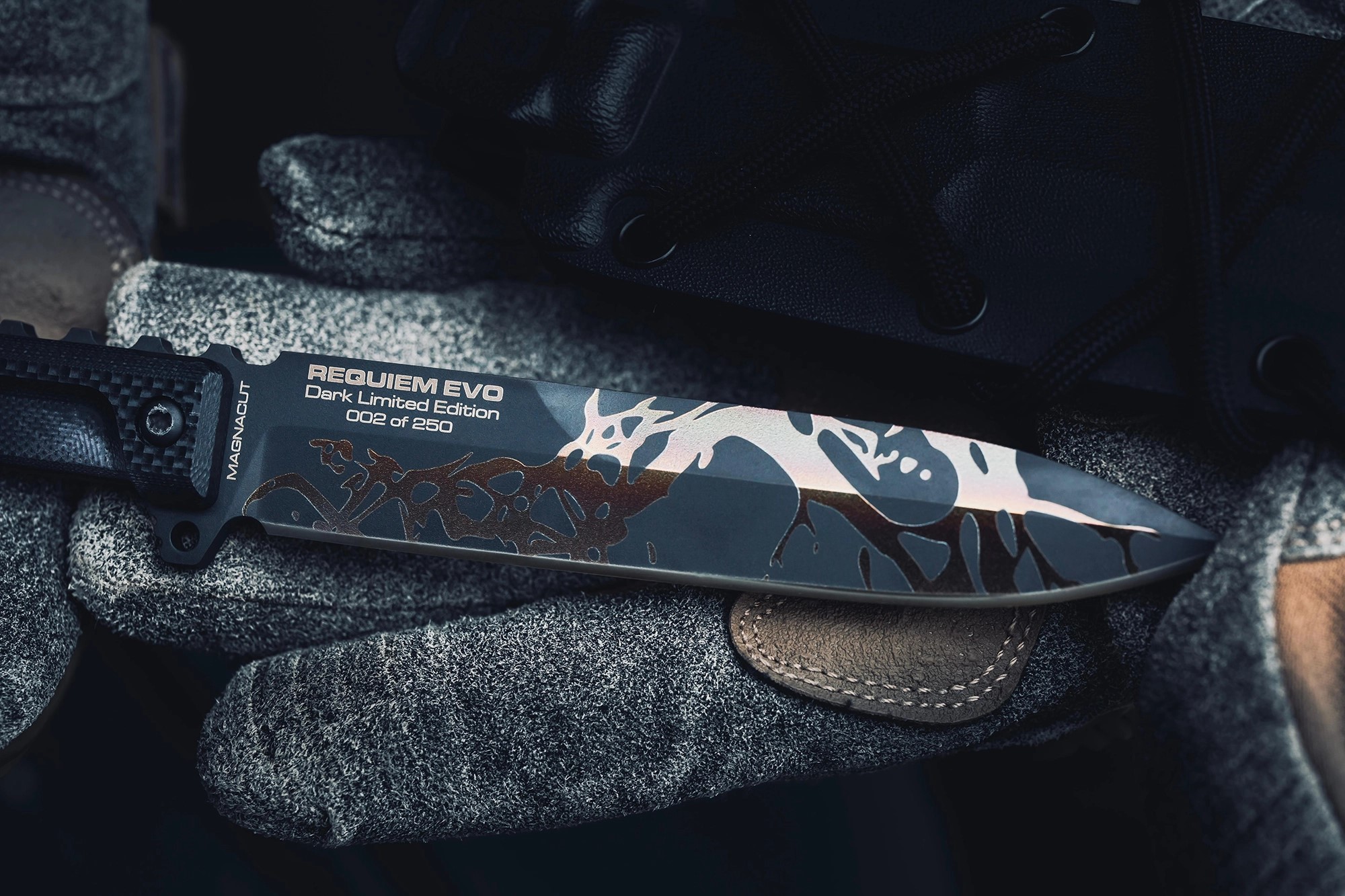 REQUIEM EVO DARK是廣受讚譽的 Requiem 的全龍骨版本,並在各方面都進行了全面升級:更堅固的結構、全新的矛形刀尖輪廓帶來更強的穿透力和更乾淨利落的切割效果、以及具有未來感設計的黑色 G10 手柄。刀身