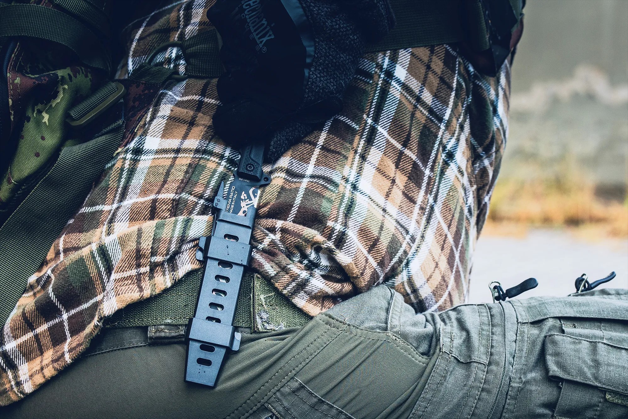 Kydex材質(戰術配置): 專為MOLLE系統設計,可輕鬆適應Ulticlip、腰帶夾、傘繩等多種配件。