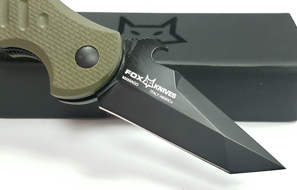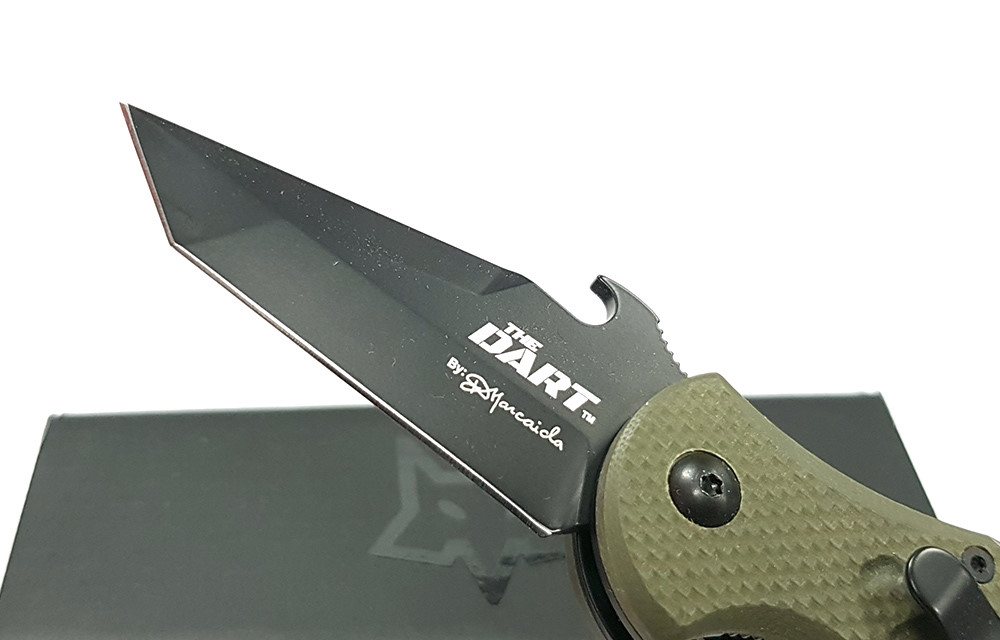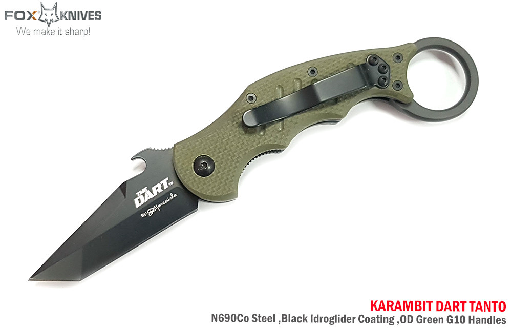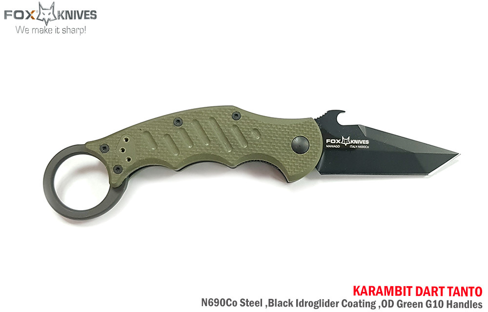 Fox Knives THE DART 橄欖綠G10柄 黑Tanto刃Karambit 折刀 - N690Co鋼(Black Idroglider塗層)