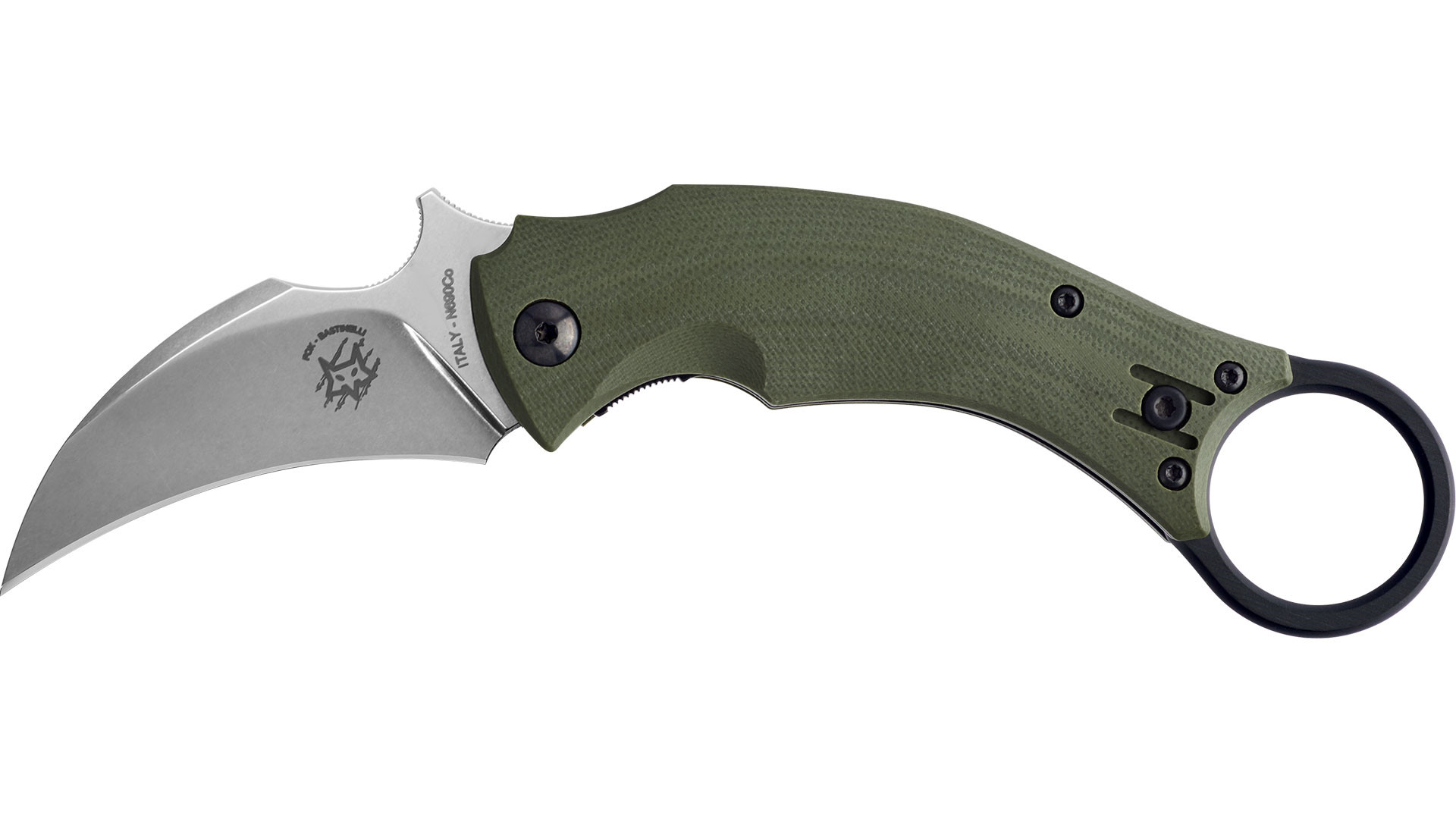 狐狸刀Black Bird是與Bastinelli Creations合作設計的。這款高性能卡拉姆比特折疊刀配有黑色G-10手柄和黑色成品刀片。刀片由Bohler N690鋼製成,並具有用於快速展開的開袋器。指環和仿形手柄設計可在困難的條件下提供牢固,可靠的抓握。令人印象深刻的戰術設計完成了可逆的自升式口袋夾。