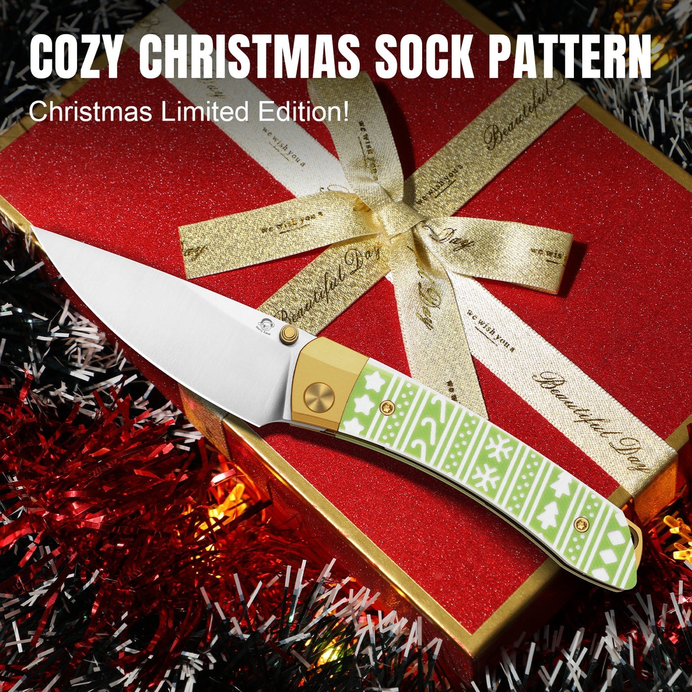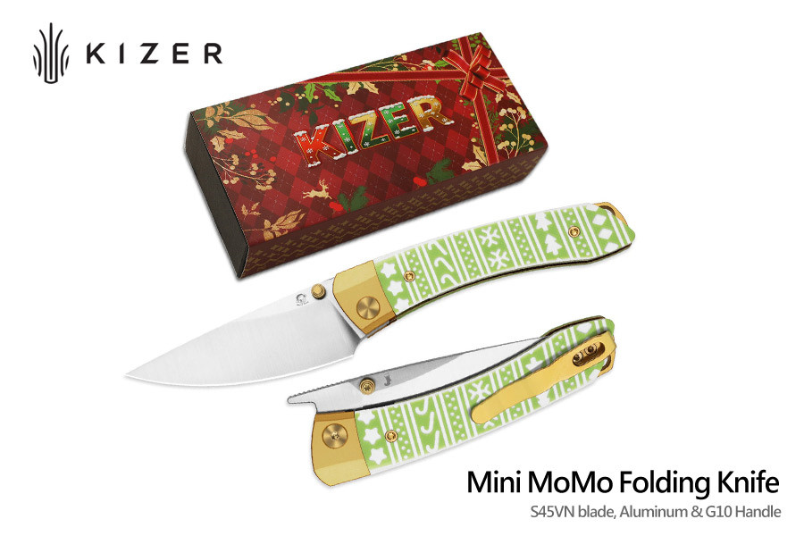 KIZER Mini MoMo聖誕塗裝G10+金色鋁柄折刀/CPM-S45VN鋼 【Christmas Limited 限量版】