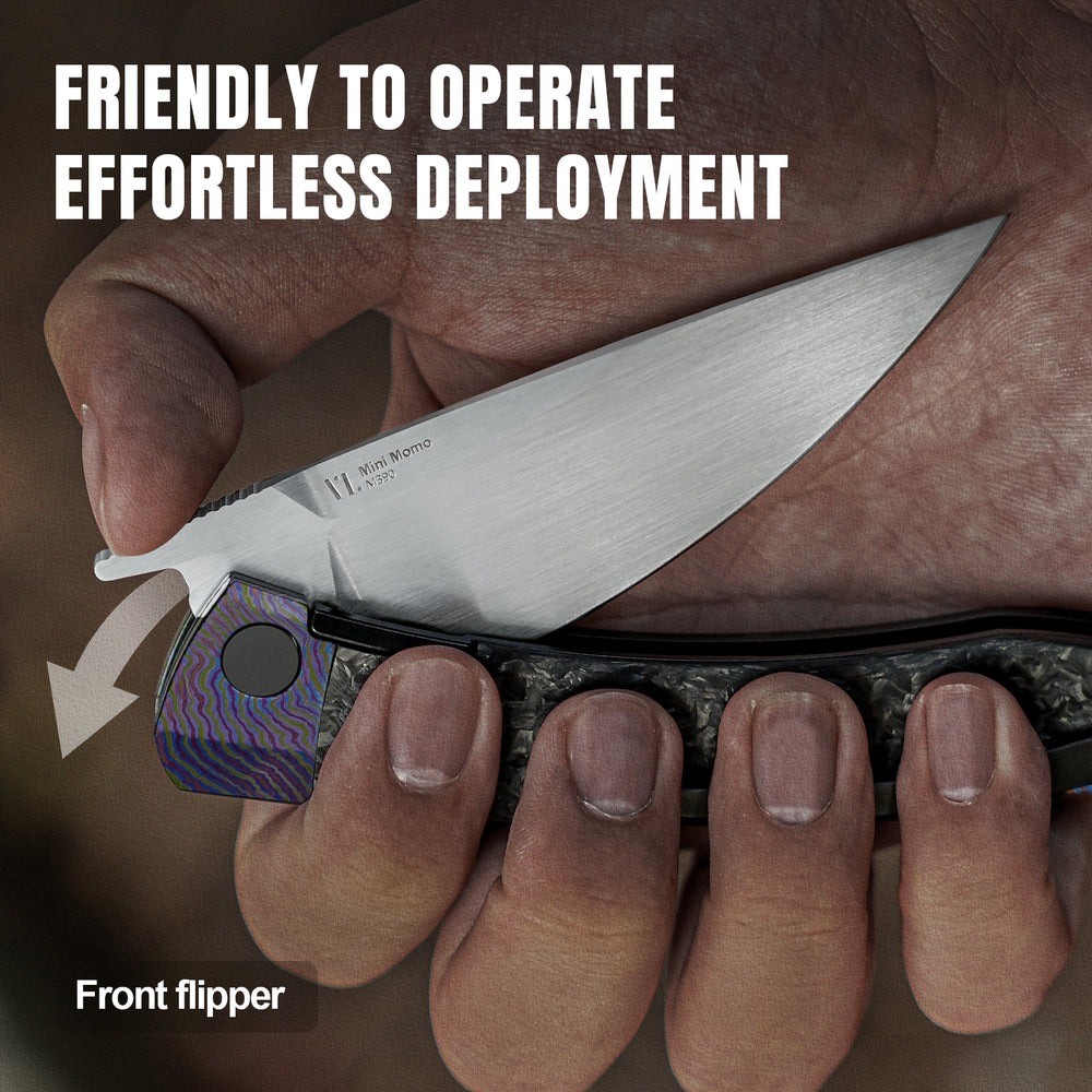 Mini MoMo家族的頂級成員,靈感源自日本切出刀,是EDC、露營和家庭園藝的理想選擇。它汲取了傳統切出刀的靈感,並融合了現代人體工學設計,操作輕鬆便捷。
