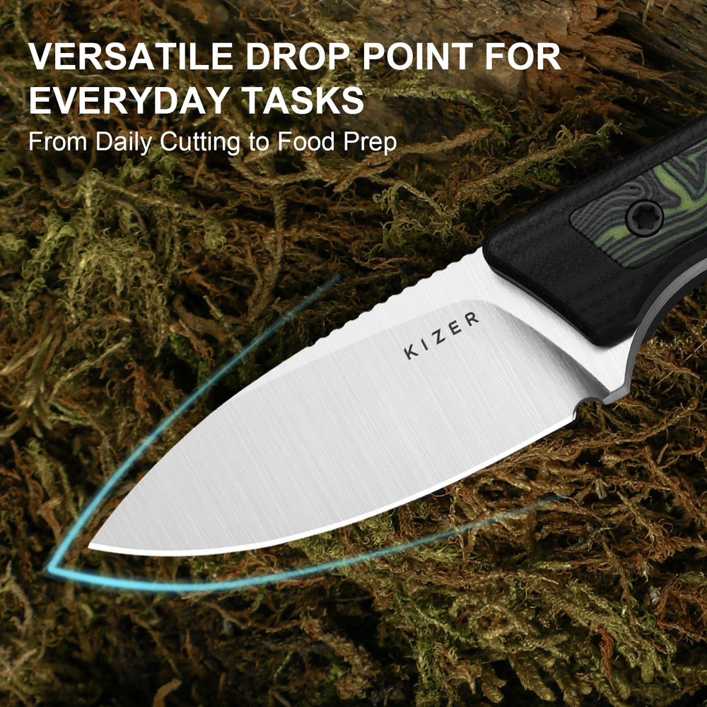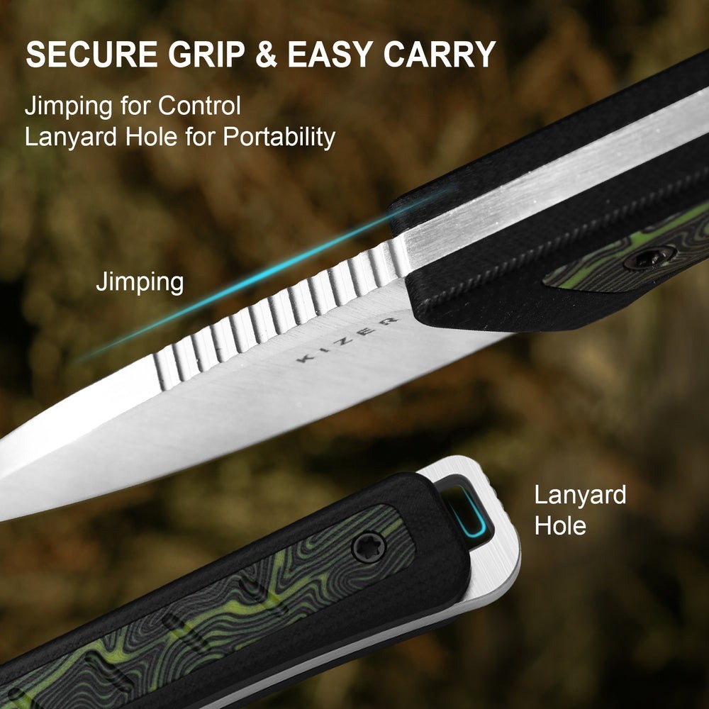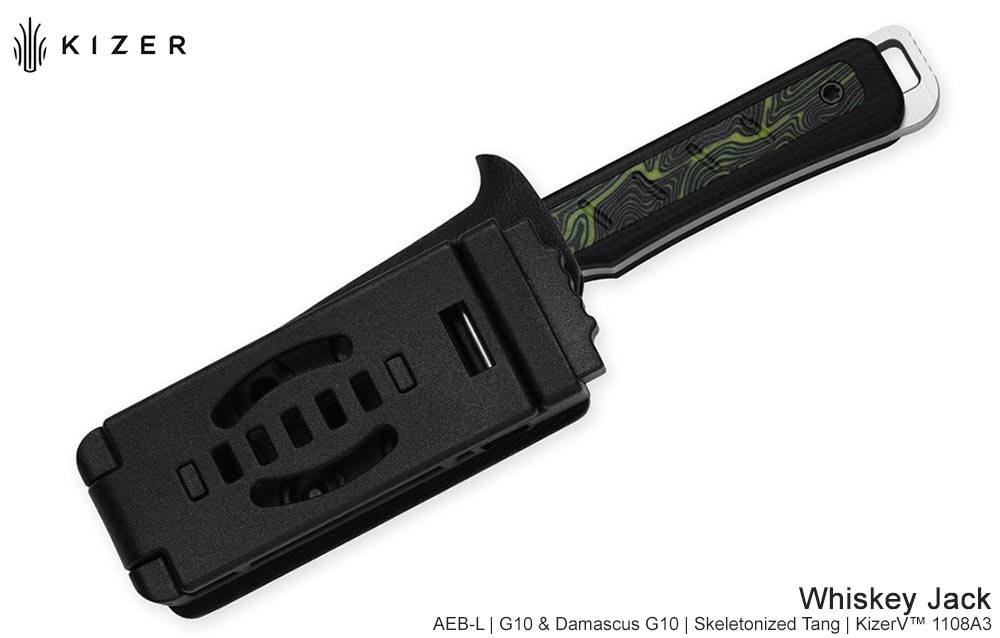 Kizer Whiskey Jack 黑綠G10大馬士革紋柄直刀 -AEB-L鋼(Satin處理)