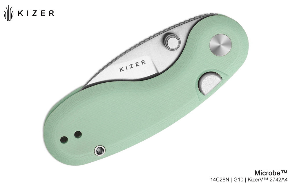Kizer Microbe™ 原色G10柄按鈕鎖折刀 -14C28N鋼(Satin處理)