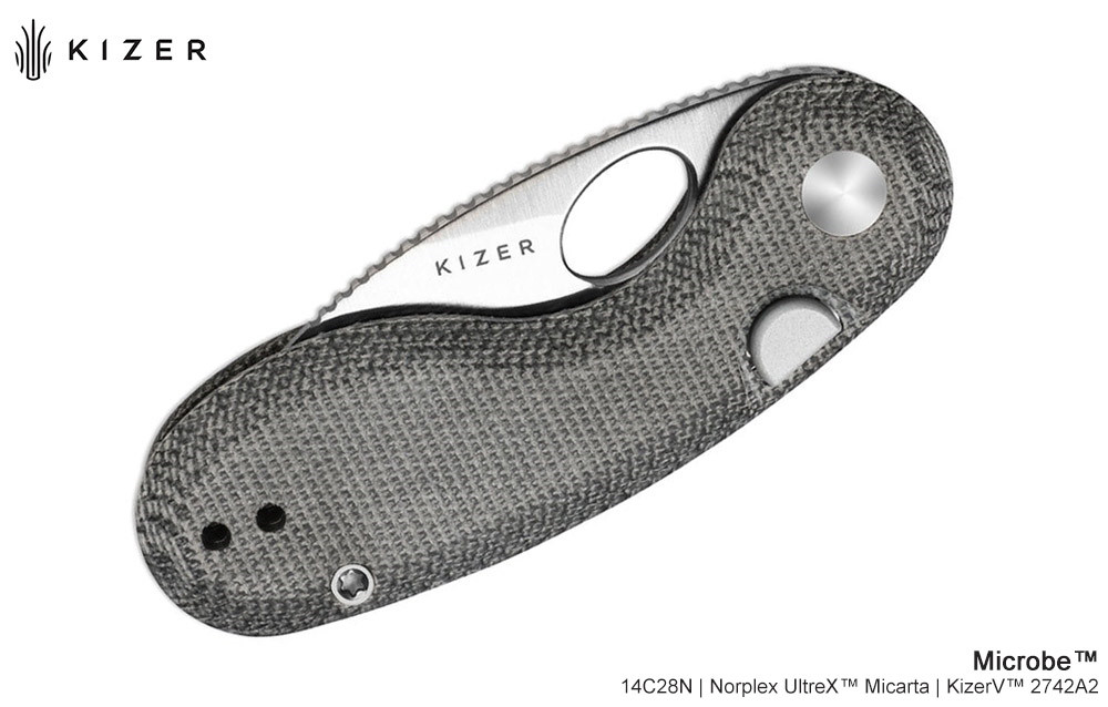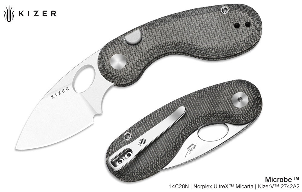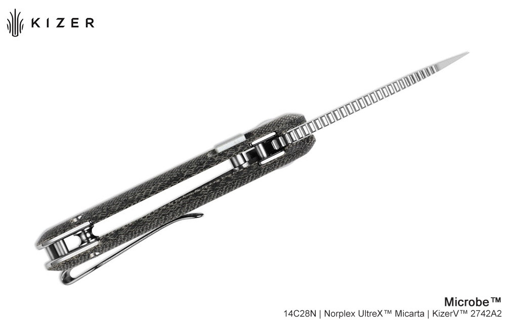 Kizer Microbe™ Norplex UltreX™ G10柄按鈕鎖折刀 -14C28N鋼(Satin處理)