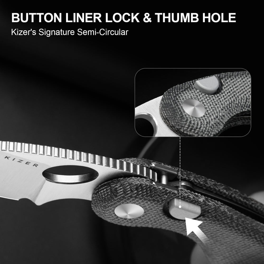 1.高品質材料: Kizer 使用優質材料,主要來自美國和日本。常用的刀片鋼材包括 CPM-S35VN、CPM S45VN、Bohler M390、CPM-20CV 和 154CM。刀柄材料通常包括鈦合金、碳纖維、G-10 和米卡塔。