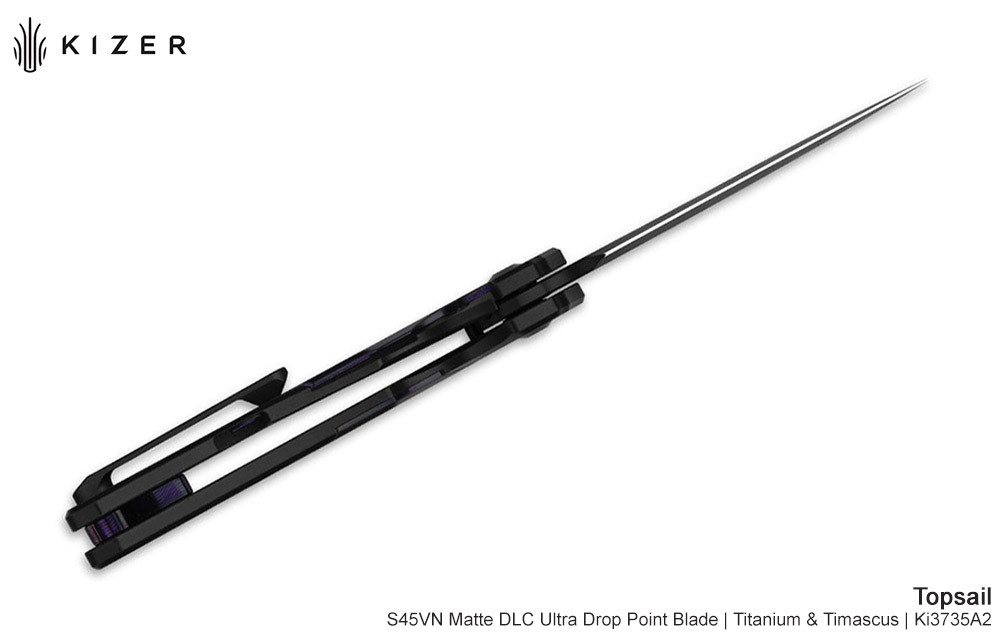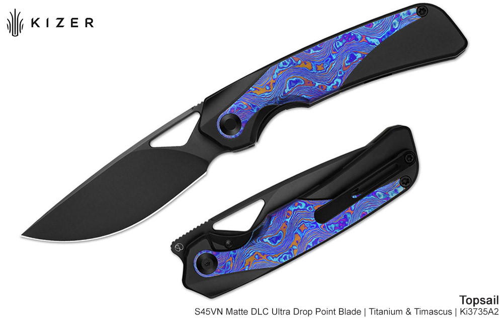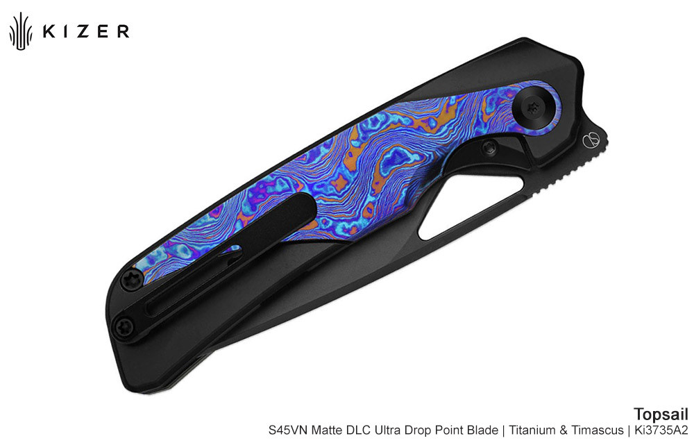 Kizer Topsail 黑鈦馬士革柄 Frame Lock 折刀 -S45VN鋼(Matte DLC Ultra 處理)