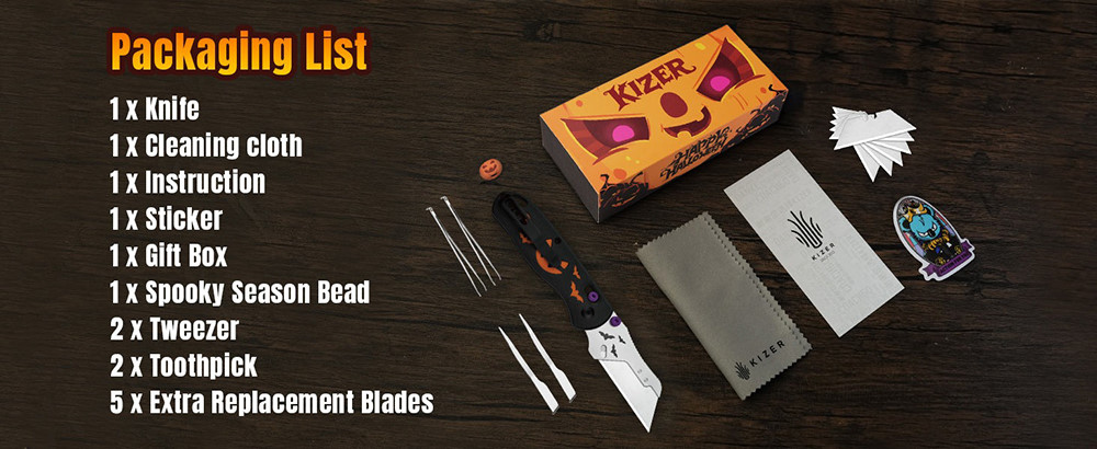 Kizer Halloween Uti Bear 1 黑G10柄Clutch Lock美工刀 -50Cr15MoV鋼( PVD處理 / 附備用刀片x5)