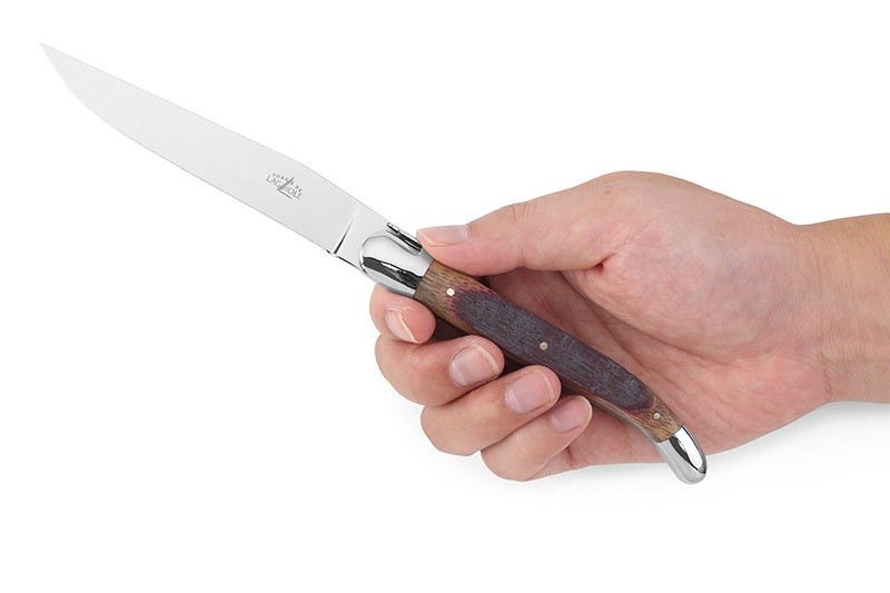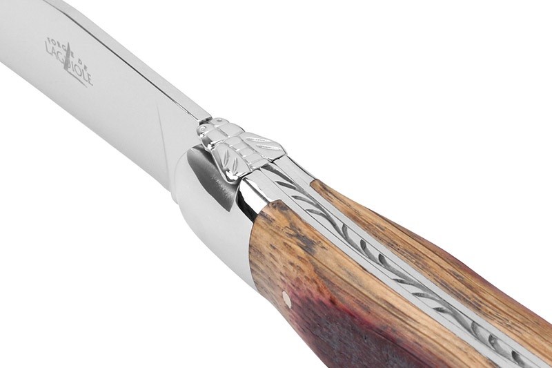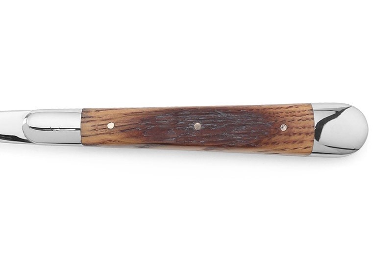 手工刀具上的十字架圓點標誌,為早期牧羊人在野外放牧,方便於飲用餐前酒時,直接將侍酒刀插在土上,對其十字架紋路禱告。 Laguiole是位於法國中南部高原上的一個小村落,小小城鎮卻擁有數家米其林星級餐廳,但此城鎮最為人所稱道的還是其細膩、精緻的鑄鐵工藝。每把Laguiole的刀具都強調100%手工打造,拉奇歐樂上的蜜蜂相傳是拿破崙給予該城鎮的標記,代表驍勇善戰且善於鑄造的拉奇歐樂居民。